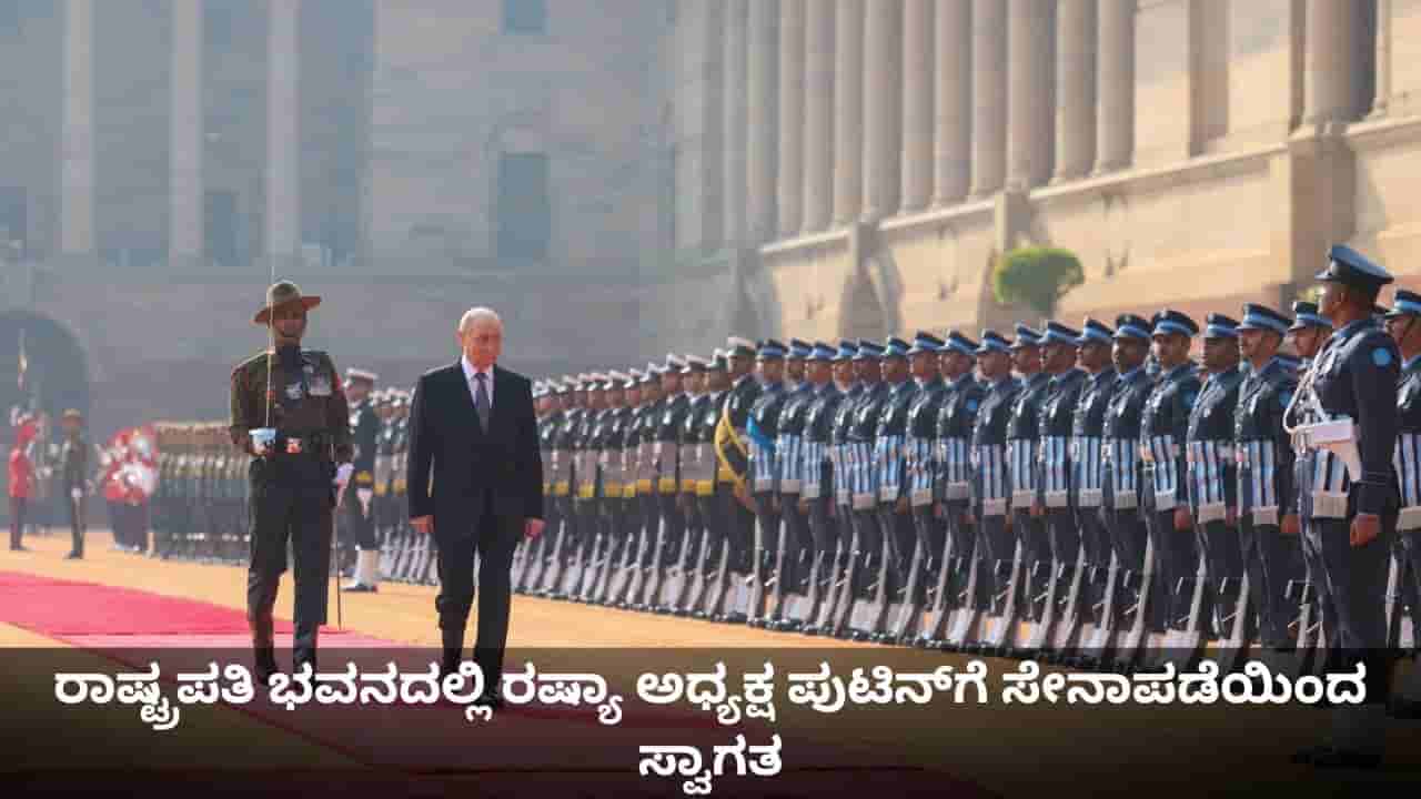 ನವದೆಹಲಿ, ಡಿಸೆಂಬರ್ 5: ಭಾರತದ ಭೇಟಿಗಾಗಿ ನಿನ್ನೆ (ಗುರುವಾರ) ದೆಹಲಿಗೆ ಆಗಮಿಸಿರುವ ರಷ್ಯಾ ಅಧ್ಯಕ್ಷ ವ್ಲಾಡಿಮಿರ್ ಪುಟಿನ್ (Russia President Putin) ನಿನ್ನೆ ರಾತ್ರಿ ಪ್ರಧಾನಿ ಮೋದಿಯವರ ಜೊತೆ ಔತಣಕೂಟದಲ್ಲಿ ಪಾಲ್ಗೊಂಡಿದ್ದರು. ಇಂದು ಅವರಿಗೆ ರಾಷ್ಟ್ರಪತಿ ಭವನದಲ್ಲಿ ಸಾಂಪ್ರದಾಯಿಕ ಸ್ವಾಗತ ಮತ್ತು ಮೂರು ಸೇನಾಪಡೆಗಳ ಗೌರವ ವಂದನೆ ನೀಡಲಾಯಿತು. ಇಂದು ಬೆಳಗ್ಗೆ ರಾಷ್ಟ್ರಪತಿ ದ್ರೌಪದಿ ಮುರ್ಮು ಮತ್ತು ಪ್ರಧಾನಿ ನರೇಂದ್ರ ಮೋದಿ ಅವರು ರಾಷ್ಟ್ರಪತಿ ಭವನದ ಮುಂಭಾಗದಲ್ಲಿ ರಷ್ಯಾದ ಅಧ್ಯಕ್ಷರನ್ನು ಆತ್ಮೀಯವಾಗಿ ಸ್ವಾಗತಿಸಿದರು. ಇದಾದ ನಂತರ, ಪುಟಿನ್ ರಾಜ್ ಘಾಟ್ಗೆ ಭೇಟಿ ನೀಡಿ ಮಹಾತ್ಮ ಗಾಂಧಿಯವರ ಸ್ಮಾರಕಕ್ಕೆ ಗೌರವ ಸಲ್ಲಿಸಿದರು.