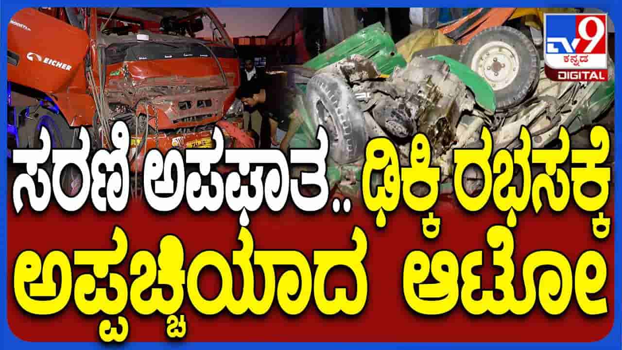 ಬೆಂಗಳೂರು, 15 ಮಾರ್ಚ್: ಇಂದು ಬೆಳಗ್ಗೆ ಸುಮಾರು 5 ಗಂಟೆಗೆ ನಗರದ ಬಾಪೂಜಿನಗರದಲ್ಲಿರುವ ಸ್ಯಾಟೆಲೈಟ್ ಬಸ್ ನಿಲ್ದಾಣದ (Satellite bus stop) ಬಳಿ ನಡೆದಿರುವ ಘಟನೆ ಇದು. ಕ್ಯಾಂಟರ್ ಒಂದು ಮೈಸೂರಿಗೆ ಹೊರಡುತ್ತಿದ್ದ ಕೆಎಸ್ಆರ್ಟಿಸಿ ಐರಾವತ ಬಸ್ಸು ಸೇರಿದಂತೆ, ಕಾರು, ಲಾರಿ, ಆಟೋ ಮತ್ತು ಬೈಕ್ ಗೆ ಗುದ್ದಿ ಸರಣಿ ಅಪಘಾತ ಸಂಭವಿಸಿದೆ. ಕ್ಯಾಂಟರ್ ನಿಂದ ಗುದ್ದಿಸಿಕೊಂಡ ಲಾರಿ ತನ್ನ ಮುಂದಿದ್ದ ನಿಂತಿದ್ದ ಆಟೋ ಮೇಲೆ ಹತ್ತಿದ ಕಾರಣ ಅದು ಸಂಪೂರ್ಣವಾಗಿ ಅಪ್ಪಚ್ಚಿಯಾಗಿದೆ. ಸಮಾಧಾನಕರ ಸಂಗತಿಯೆಂದರೆ ಇಷ್ಟು ಭಯನಕ ಘಟನೆ ನಡೆದರೂ ಒಬ್ಬ ವ್ಯಕ್ತಿ ಮಾತ್ರ ಗಾಯಗೊಂಡು ಅಸ್ಪತ್ರೆಯಲ್ಲಿ ಚಿಕಿತ್ಸೆ ಪಡೆಯುತ್ತಿದ್ದಾರೆ.
