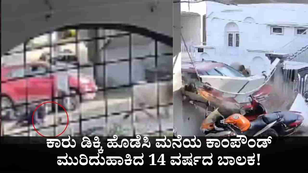 ಕಾರು ಡಿಕ್ಕಿ ಹೊಡೆಸಿ ಮನೆಯ ಕಾಂಪೌಂಡ್ ಮುರಿದುಹಾಕಿದ 14 ವರ್ಷದ ಬಾಲಕ!