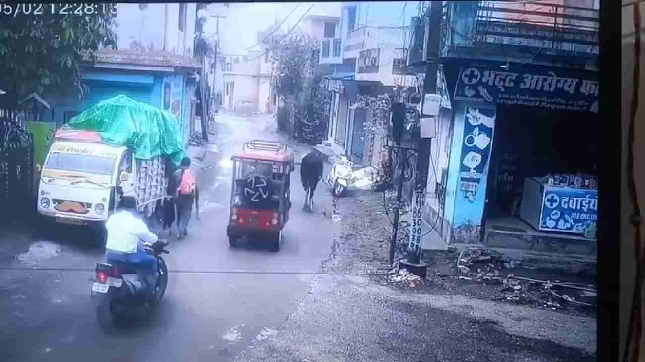 ರಸ್ತೆಯಲ್ಲಿ ನಿಲ್ಲಿಸಿದ್ದ ಸ್ಕೂಟಿಯನ್ನೇ ತಳ್ಳಿಕೊಂಡು ಹೋದ ಗೂಳಿ!