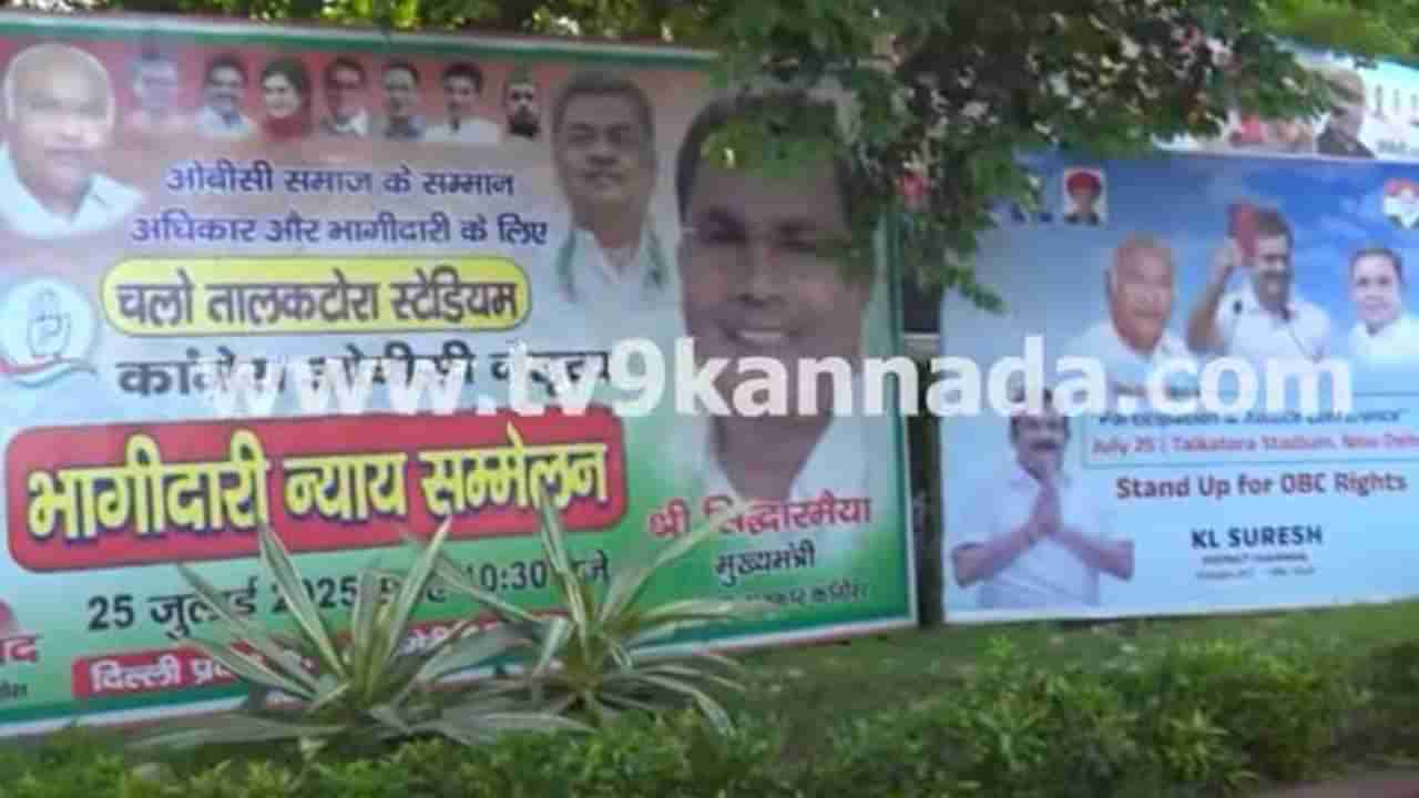 ದೆಹಲಿ ರಸ್ತೆಗಳಲ್ಲಿ ಸಿದ್ದರಾಮಯ್ಯ ಫ್ಲೆಕ್ಸ್ಗಳು, ಭಾಗೀದಾರಿ ನ್ಯಾಯ್ ಸಮ್ಮೇಳನದಲ್ಲಿ ಸಿಎಂ ಮುಖ್ಯ ಭಾಷಣಕಾರ