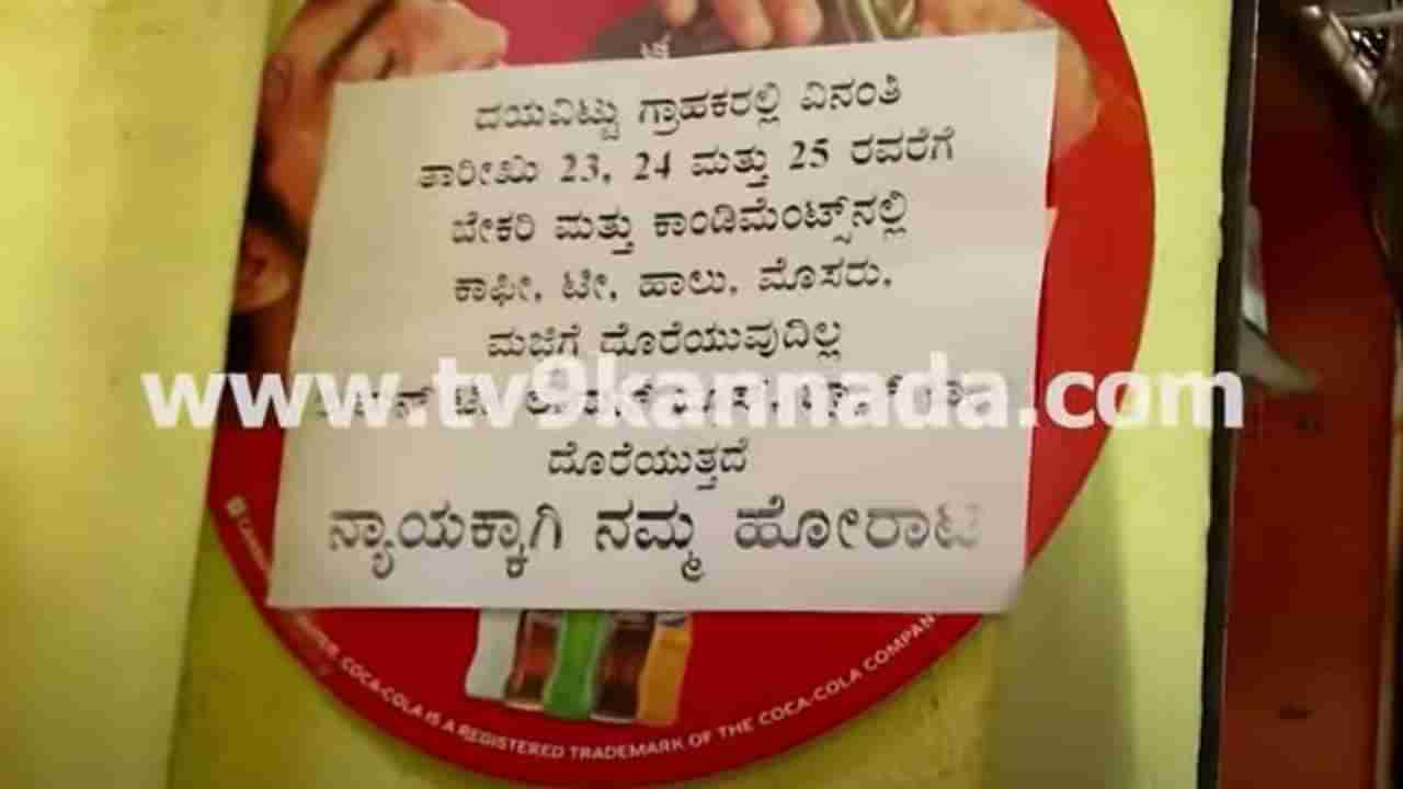 ಬೆಂಗಳೂರು, ಜುಲೈ 23: ಕಮರ್ಷಿಯಲ್ ಟ್ಯಾಕ್ಸ್ ನೋಟೀಸ್ಗಳಿಂದ ಭೀತಿಗೊಳಗಾಗಿರುವ ಕಾಂಡಿಮೆಂಟ್ಸ್, ಟೀ ಸ್ಟಾಲ್ ಮತ್ತು ಬೇಕರಿಗಳ ಮಾಲೀಕರು ಇಂದಿನಿಂದ ತಮ್ಮ ಹೋರಾಟ (protest) ಆರಂಭಿಸಿದ್ದಾರೆ. ಹೋರಾಟದ ಮೊದಲ ಭಾಗವಾಗಿ ಅವರು ತಮ್ಮ ಅಂಗಡಿಗಳಲ್ಲಿ ಹಾಲು ಮತ್ತು ಅದರ ಉತ್ಪನ್ನಗಳ ಮಾರಾಟದ ಜೊತೆ ಕಾಫಿ, ಟೀ, ಗ್ರಾಹಕರಿಗೆ ಮಾರುವುದನ್ನು ನಿಲ್ಲಿಸಿದ್ದಾರೆ. ಗ್ರಾಹಕರು ವಿಧಿಯಿಲ್ಲದೆ ಬ್ಲ್ಯಾಕ್ ಟೀ, ಬ್ಲ್ಯಾಕ್ ಕಾಫಿ, ಲೆಮನ್ ಟೀ ಕುಡಿದು ತೃಪ್ತರಾಗುತ್ತಿದ್ದಾರೆ. ಹಾಲು ಕೊಳ್ಳಲು ಅಂಗಡಿಗೆ ಬರುವವರಿಗೆ ಅನುಕೂಲವಾಗಲಿ ಅಂತ ಅವರು ಇವತ್ತು ಹಾಲು ಉತ್ಪನ್ನಗಳ ಮಾರಾಟ ಇಲ್ಲವೆಂದು ಪೇಪರ್ಗಳಲ್ಲಿ ಟೈಪ್ ಮಾಡಿಸಿ ಮೆತ್ತಿದ್ದಾರೆ. ಇವತ್ತು ಹಾಲು ಮತ್ತು ನಾಳೆ ತಂಬಾಕು ಉತ್ಪನ್ನಗಳ ಮಾರಾಟ ಇರೋದಿಲ್ಲ.