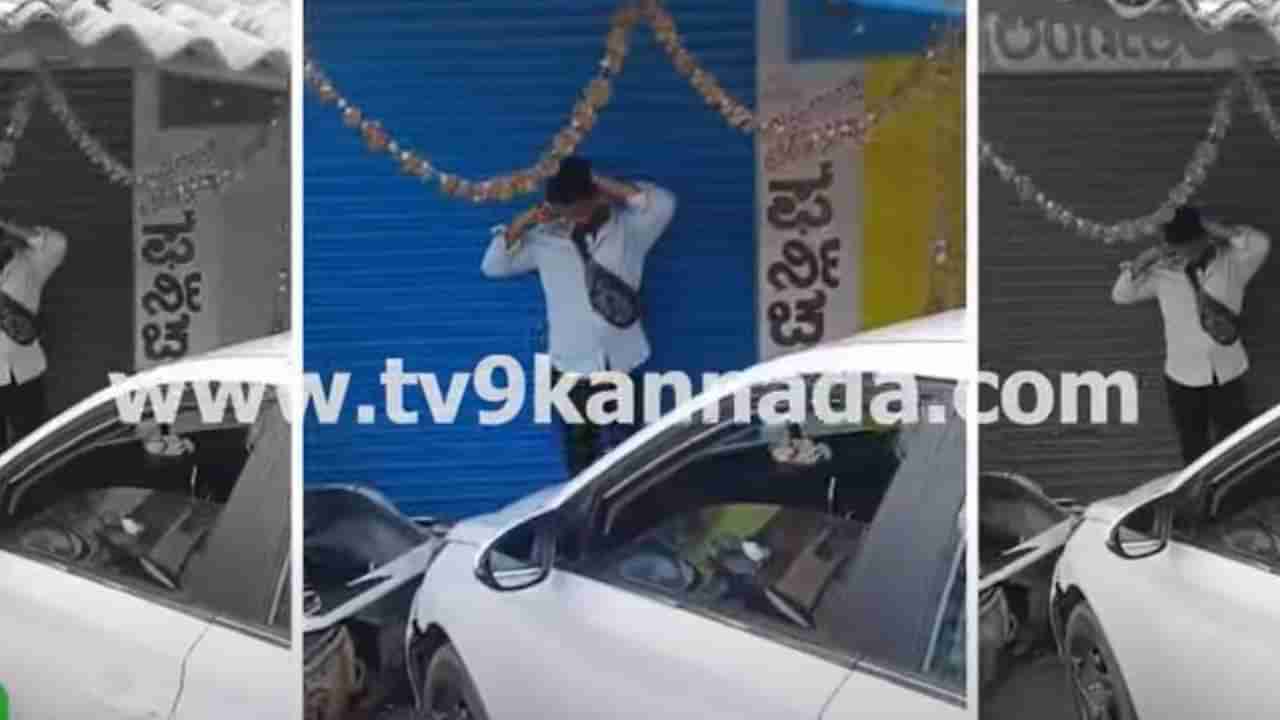 ಶ್ರೀರಂಗಪಟ್ಟಣದಲ್ಲಿ ರಸ್ತೆಬದಿ ಅಂಗಡಿಗೆ ಗುದ್ದಿದ ಕಾರು, ಅದೃಷ್ಟವಶಾತ್ ಪಾದಚಾರಿಗಳು ಪಾರು