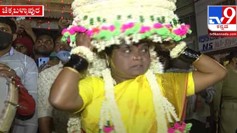 ಚಿಕ್ಕಬಳ್ಳಾಪುರದಲ್ಲಿ ಕರಗ ಹೊತ್ತ ಮಹಿಳೆ ನೋಡಲು ಮುಗಿಬಿದ್ದ ಜನ..