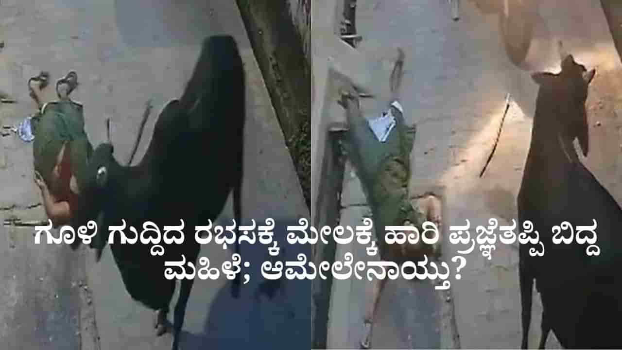 ಗೂಳಿ ಗುದ್ದಿದ ರಭಸಕ್ಕೆ ಮೇಲಕ್ಕೆ ಹಾರಿ ಪ್ರಜ್ಞೆತಪ್ಪಿ ಬಿದ್ದ ಮಹಿಳೆ; ಆಮೇಲೇನಾಯ್ತು?