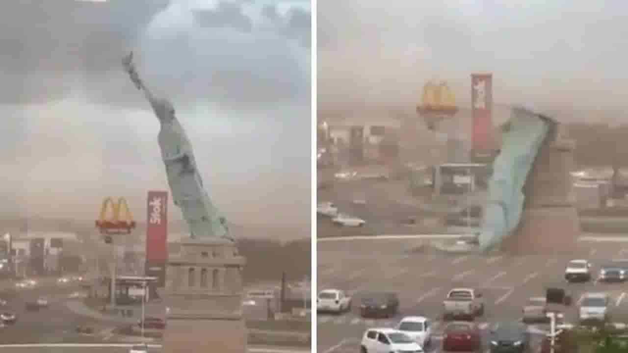 ದಕ್ಷಿಣ ಬ್ರೆಜಿಲ್ನ ಗುವಾಯ್ಬಾದಲ್ಲಿ ಭಾರಿ ಚಂಡಮಾರುತ ಅಪ್ಪಳಿಸಿದೆ. ಬಲವಾದ ಗಾಳಿ ಬೀಸಿದ್ದು, ಲಿಬರ್ಟಿ ಪ್ರತಿಮೆ ನೆಲಕ್ಕುರುಳಿದೆ. ಈ ವಿಡಿಯೋ ಸಾಮಾಜಿಕ ಜಾಲತಾಣಗಳಲ್ಲಿ ವೈರಲ್ ಆಗಿದೆ. ಇದು ಲಿಬರ್ಟಿ ಪ್ರತಿಮೆಯ ಪ್ರತಿಕೃತಿಯಾಗಿದ್ದು, ಮೊದಲ ಪ್ರತಿಮೆ ಅಮೆರಿಕದ ನ್ಯೂಜರ್ಸಿಯಲ್ಲಿದೆ. ವೇಗವಾಗಿ ಗಾಳಿ ಬೀಸುತ್ತಿದ್ದ ಪರಿಣಾಮ ಪ್ರತಿಮೆ ಓರೆಯಾಗಿ ಬಳಿಕ ಖಾಲಿ ಪಾರ್ಕಿಂಗ್ ಪ್ರದೇಶದಲ್ಲಿ ಬಿದ್ದಿದೆ. ಈ ಪ್ರತಿಮೆಯನ್ನು 2020 ರಲ್ಲಿ ಸ್ಥಾಪಿಸಲಾಗಿತ್ತು. ಪ್ರತಿಮೆಯ 11 ಮೀಟರ್ ಎತ್ತರದ ಸ್ತಂಭ ಬಲಿಷ್ಠವಾಗಿಯೇ ಇತ್ತು. ಗಾಳಿಯ ವೇಗ ಗಂಟೆಗೆ 80 ರಿಂದ 90 ಕಿ.ಮೀ ವೇಗದಲ್ಲಿತ್ತು. ಅಲ್ಲಿದ್ದ ಅಂಗಡಿ ಸಿಬ್ಬಂದಿ ಕೂಡಲೇ ಜನರನ್ನು ಅಲ್ಲಿಂದ ಸ್ಥಳಾಂತರಿಸಿದರು. ಯಾರಿಗೂ ಗಾಯಗಳಾಗಿಲ್ಲ.