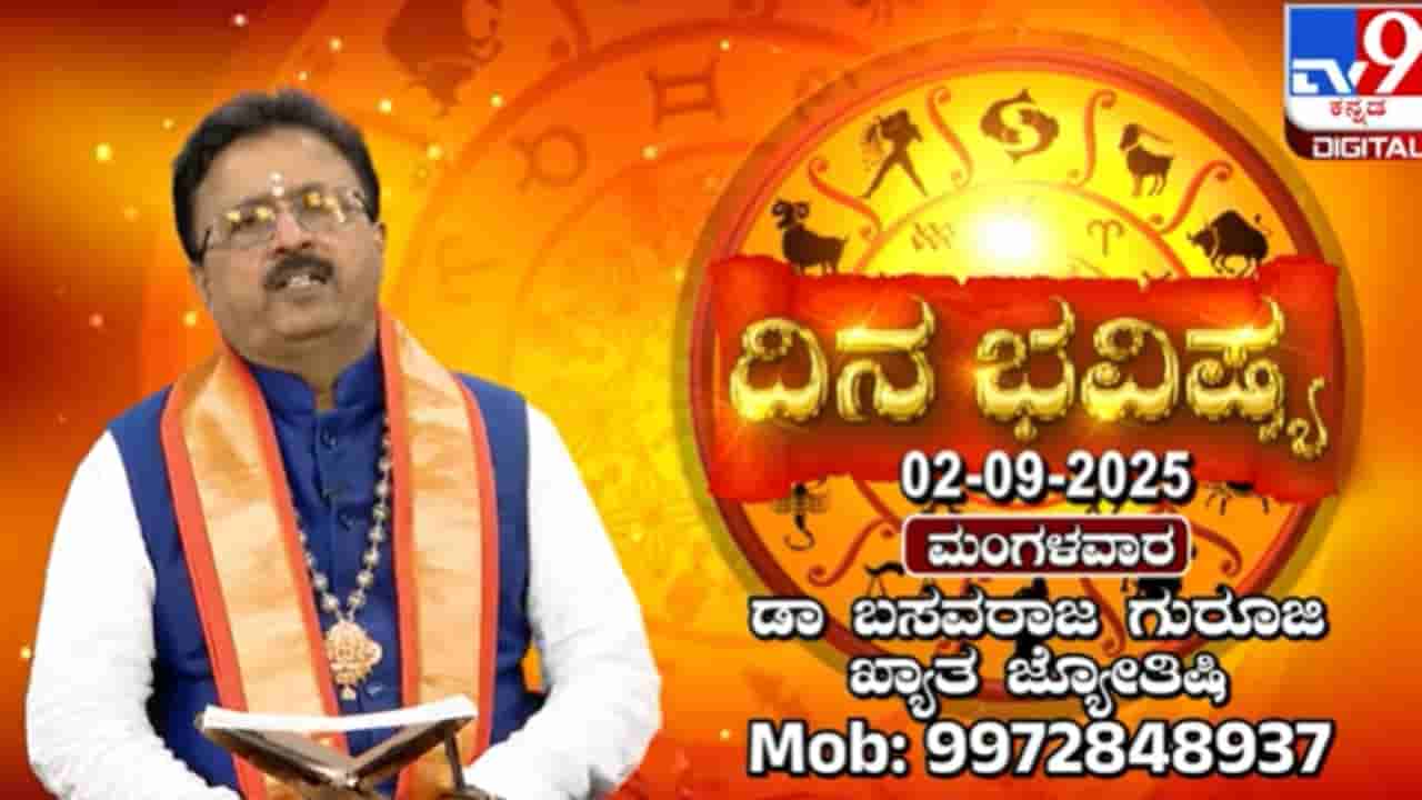 ಸೆಪ್ಟೆಂಬರ್ 2, 2025 ರ ಮಂಗಳವಾರದ ದಿನದ ರಾಶಿ ಫಲಗಳನ್ನು ಖ್ಯಾತ ಜ್ಯೋತಿಷಿ ಡಾ. ಬಸವರಾಜ ಗುರೂಜಿ ಇಲ್ಲಿ ವಿವರಿಸಿದ್ದಾರೆ. ಈ ದಿನ ವಿಶ್ವಾವಸು ಸಂವತ್ಸರ, ದಕ್ಷಿಣಾಯನ, ಭಾದ್ರಪದ ಮಾಸ, ಶುಕ್ಲಪಕ್ಷ, ದಶಮಿ, ಮೂಲ ನಕ್ಷತ್ರ ಮತ್ತು ಪ್ರೀತಿಯೋಗಗಳಿಂದ ಕೂಡಿದೆ ಎಂದು ತಿಳಿಸಲಾಗಿದೆ. ರಾಹುಕಾಲ ಮತ್ತು ಸಂಕಲ್ಪ ಕಾಲದ ಸಮಯವನ್ನೂ ಅವರು ತಿಳಿಸಿದ್ದಾರೆ. ಈ ದಿನ ಸುಗಂಧ ದಶಮಿ ಮತ್ತು ಶ್ರೀರಾಮ ಕೃಷ್ಣ ಪರಮಹಂಸರ ಪುಣ್ಯತಿಥಿಯಾಗಿಯೂ ಆಚರಿಸಲಾಗುತ್ತದೆ. ವಿವರಗಳಿಗೆ ವಿಡಿಯೋ ನೋಡಿ.