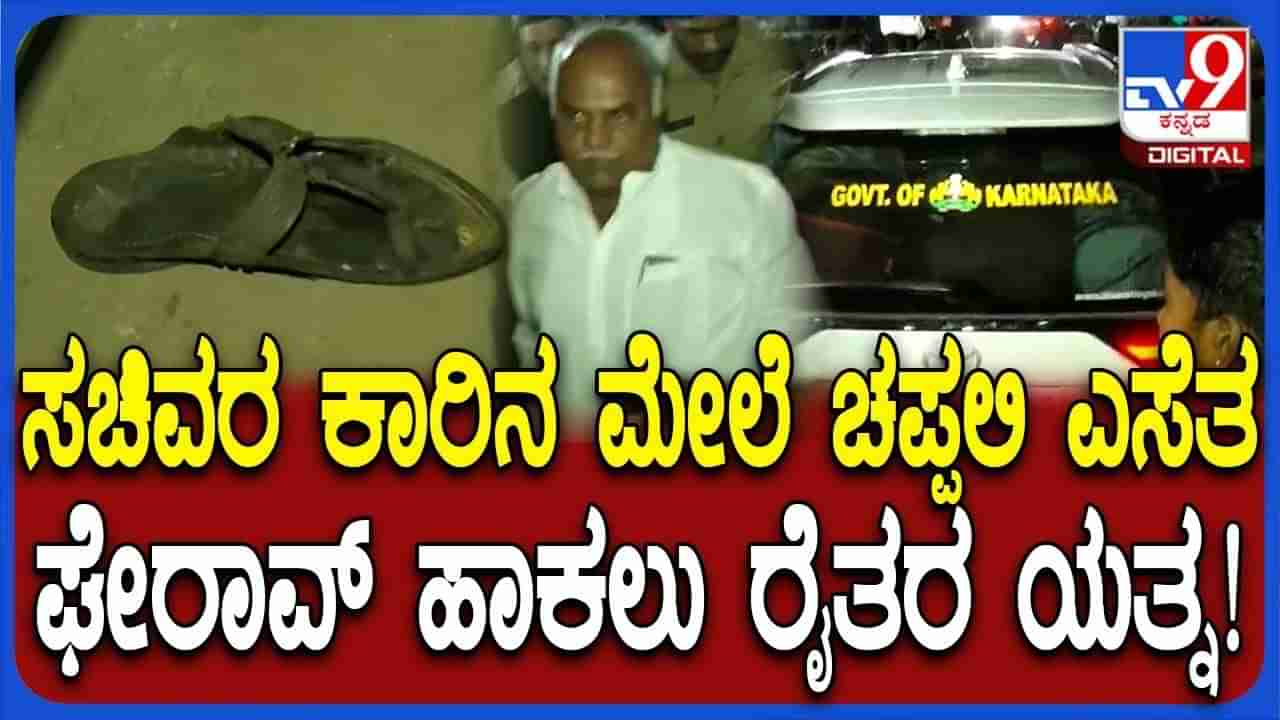 ಕಬ್ಬಿಗೆ ದರ ನಿಗದಿಗೆ ಆಗ್ರಹಿಸಿ ಬೆಳಗಾವಿಯಲ್ಲಿ ರೈತರ ಅಹೋರಾತ್ರಿ ಹೋರಾಟ ಮುಂದುವರೆದಿದೆ. ಪ್ರತಿ ಟನ್ ಕಬ್ಬಿಗೆ 3,500 ರೂ. ದರ ಘೋಷಣೆಗೆ ಒತ್ತಾಯಿಸಿ ಕಬ್ಬು ಬೆಳೆಗಾರುರು ಕಳೆದ 8 ದಿನಗಳಿಂದ ಬೆಳಗಾವಿಯ ಗುರ್ಲಾಪುರ ಕ್ರಾಸ್ನಲ್ಲಿ ಧರಣಿ ನಡೆಸಿದ್ದಾರೆ. ಪ್ರತಿಭಟನೆ ತೀವ್ರ ಸ್ವರೂಪ ಪಡೆದುಕೊಳ್ಳುತ್ತಿದ್ದಂತೆಯೇ ಸಕ್ಕರೆ ಖಾತೆ ಸಚಿವ ಶಿವಾನಂದ ಪಾಟೀಲ್ ಅವರು ಸ್ಥಳಕ್ಕೆ ಭೇಟಿ ನೀಡಿದರು. 8ನೇ ದಿನಕ್ಕೆ ಬಂದಿದ್ದಾರೆಂದು ರೊಚ್ಚಿಗೆದ್ದ ರೈತರು ಸಚಿವರು ವಿರುದ್ಧ ಘೋಷಣೆ ಕೂಗಿದರು. ಅಲ್ಲದೇ ಮತ್ತೊಂದು ಹೆಜ್ಜೆ ಮುಂದೆ ಹೋಗಿ ಸಚಿವರ ಕಾರಿನಲ್ಲಿ ಮೇಲೆ ಚಪ್ಪಲಿ ಎಸೆದು ಆಕ್ರೋಶ ಹೊರಹಾಕಿದ್ದಾರೆ.