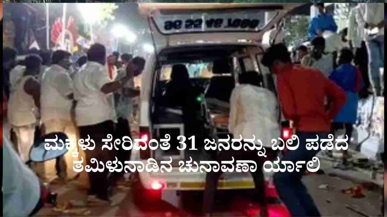 ಮಕ್ಕಳು ಸೇರಿದಂತೆ 31 ಜನರನ್ನು ಬಲಿ ಪಡೆದ ತಮಿಳುನಾಡಿನ ಚುನಾವಣಾ ರ್ಯಾಲಿ; 60ಕ್ಕೂ ಅಧಿಕ ಜನರ ಸ್ಥಿತಿ ಗಂಭೀರ