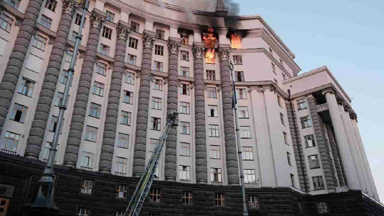 ಉಕ್ರೇನಿನಾದ್ಯಂತ ರಾತ್ರೋರಾತ್ರಿ ರಷ್ಯಾ ಪಡೆಗಳು ದಾಳಿ ನಡೆಸಿವೆ. ನಾಲ್ಕು ಮಂದಿ ಪ್ರಾಣ ಕಳೆದುಕೊಂಡಿದ್ದಾರೆ. ಉಕ್ರೇನಿನ ಕ್ಯಾಬಿನೆಟ್ ಬಿಲ್ಡಿಂಗ್ ಮೇಲೂ ದಾಳಿ ನಡೆದಿದ್ದು, ವಿಡಿಯೋ ಎಲ್ಲೆಡೆ ಹರಿದಾಡಿದೆ. ರಾಜಧಾನಿ ಕೈವ್ನಲ್ಲಿರುವ ಸರ್ಕಾರಿ ಕಟ್ಟಡಕ್ಕೆ ಬೆಂಕಿ ಹೊತ್ತಿಕೊಂಡಿದೆ ಎಂದು ಅಧಿಕಾರಿಗಳು ತಿಳಿಸಿದ್ದಾರೆ. ಕೈವ್ನಲ್ಲಿನ ಹಲವಾರು ಬಹುಮಹಡಿ ಕಟ್ಟಡಗಳಿಗೆ ಈ ದಾಳಿಗಳು ಹಾನಿಯನ್ನುಂಟುಮಾಡಿವೆ . ಎತ್ತರದ ಮಹಡಿಯಲ್ಲಿ ಬೆಂಕಿಯನ್ನು ನಂದಿಸಲು ಅಗ್ನಿಶಾಮಕ ದಳ ಹರಸಾಹಸ ಪಡುತ್ತಿರುವುದನ್ನು ಕಾಣಬಹುದು. ಈಶಾನ್ಯ ಸುಮಿ ಪ್ರದೇಶದಲ್ಲಿ ನಡೆದ ಮತ್ತೊಂದು ದಾಳಿಯಲ್ಲಿ ಒಬ್ಬರು ಸಾವನ್ನಪ್ಪಿ, ಹಲವಾರು ಮಂದಿ ಗಾಯಗೊಂಡಿದ್ದಾರೆ.