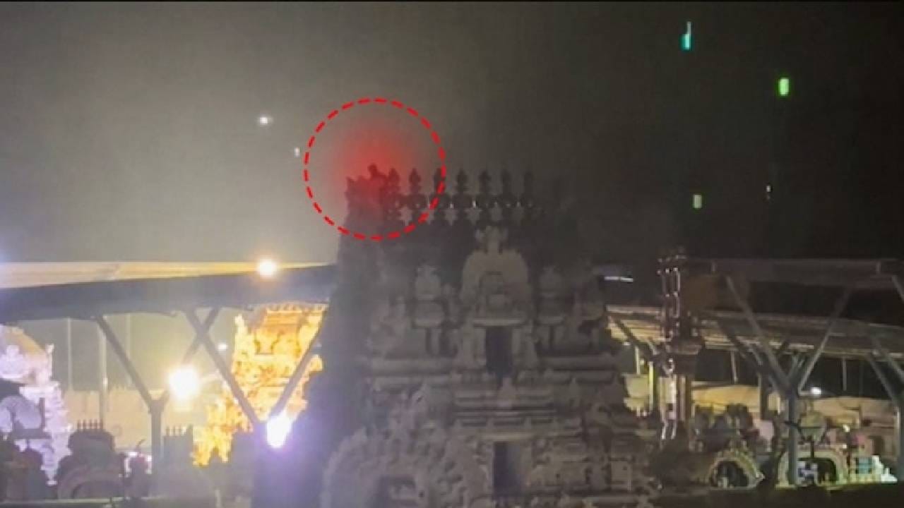 ವಿಪರ್ಯಾಸವೆಂದರೆ ಆ ಕುಡುಕನ ಹೆಸರು ಕೂಡ ತಿರುಪತಿ. ಅಧಿಕಾರಿಗಳು ಮತ್ತು ಪೊಲೀಸರು ಆತನನ್ನು ಕೆಳಗೆ ಇಳಿಸಲು ಹರಸಾಹಸ ಪಟ್ಟರು. ದೇವಾಲಯ ಮುಚ್ಚಿದ ಸ್ವಲ್ಪ ಸಮಯದ ನಂತರ ಈ ಘಟನೆ ಸಂಭವಿಸಿದೆ, ಹೇಗೋ ದೇವಸ್ಥಾನದ ಗೋಡೆಯನ್ನು ಹಾರಿ ಆವರಣಕ್ಕೆ ಪ್ರವೇಶಿಸಿದ್ದಾನೆ ಎಂದು ಹೇಳಲಾಗಿದೆ. ಅವನು ಮದ್ಯದ ಅಮಲಿನಲ್ಲಿದ್ದ ಎಂದು ವರದಿಯಾಗಿದೆ.