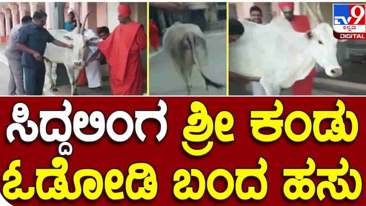 ತುಮಕೂರು: ಪ್ರಾಣಿಗಳಿಗೆ ಪ್ರೀತಿ ತೋರಿದರೆ ನಮ್ಮ ಪ್ರೀತಿಯ ಎರಡರಷ್ಟು ಅವು ವಾಪಸ್ಸು ನೀಡುತ್ತವೆ. ನಮ್ಮ ದೇಶದಲ್ಲಿ ಆಕಳು (ಹಸು) (cow) ಪೂಜನೀಯ, ಅದನ್ನು ಗೋಮಾತೆ ಅಂತ ಆದರಿಸಲಾಗುತ್ತದೆ. ತುಮಕೂರಿನ ಸಿದ್ದಗಂಗಾ ಮಠದ ಆವರಣದಲ್ಲಿ ಹಸುವೊಂದು ಸಿದ್ದಲಿಂಗ ಶ್ರೀಗಳನ್ನು (Sri Siddalinga Swamiji) ಕಂಡೊಡನೆ ಅವರಲ್ಲಿಗೆ ಓಡುತ್ತಾ ಹೋಗಿ ಮೈದಡವಿಸಿಕೊಂಡ ಅತ್ಯಂತ ಅಪ್ಯಾಯಮಾನ ದೃಶ್ಯವನ್ನು ಆವರಣದಲ್ಲಿದ್ದ ಭಕ್ತರೊಬ್ಬರು ಮೊಬೈಲ್ ಕೆಮೆರಾದಲ್ಲಿ ಸೆರೆಹಿಡಿದಿದ್ದಾರೆ. ಸಿದ್ದಲಿಂಗ ಶ್ರೀಗಳು ಶ್ರೀ ಶಿವಕುಮಾರ ಸ್ವಾಮೀಜಿಗಳ (Sri Shivakumara Swamiji) ಗದ್ದುಗೆಗೆ ನಮಿಸಿ ವಾಪಸ್ಸು ತಮ್ಮ ಕೊಠಡಿಯತ್ತ ತೆರಳುವಾಗ ಈ ಘಟನೆ ನಡೆದಿದೆ. ಹಸುಗೆ ಶೀಗಳೆಡೆ ಇರುವ ಪ್ರೀತಿ ಬೆರಗು ಮೂಡಿಸುತ್ತದೆ. ಶ್ರೀಗಳ ಸುತ್ತಮುತ್ತ ಜನರಿದ್ದರೂ ಅದು ಓಡಿ ಅವರ ಪಕ್ಕವೇ ನಿಂತುಕೊಳ್ಳುವುದು ಅನಿರ್ವಚನೀಯ!