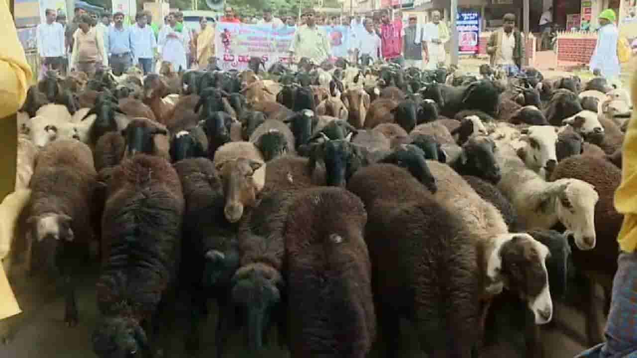 ವಿವಿಧ ಬೇಡಿಕೆ ಈಡೇರಿಸುವಂತೆ ಹುಬ್ಬಳ್ಳಿಯಲ್ಲಿ ಆಡು, ಕುರಿಗಳೊಂದಿಗೆ ಪ್ರತಿಭಟನೆ