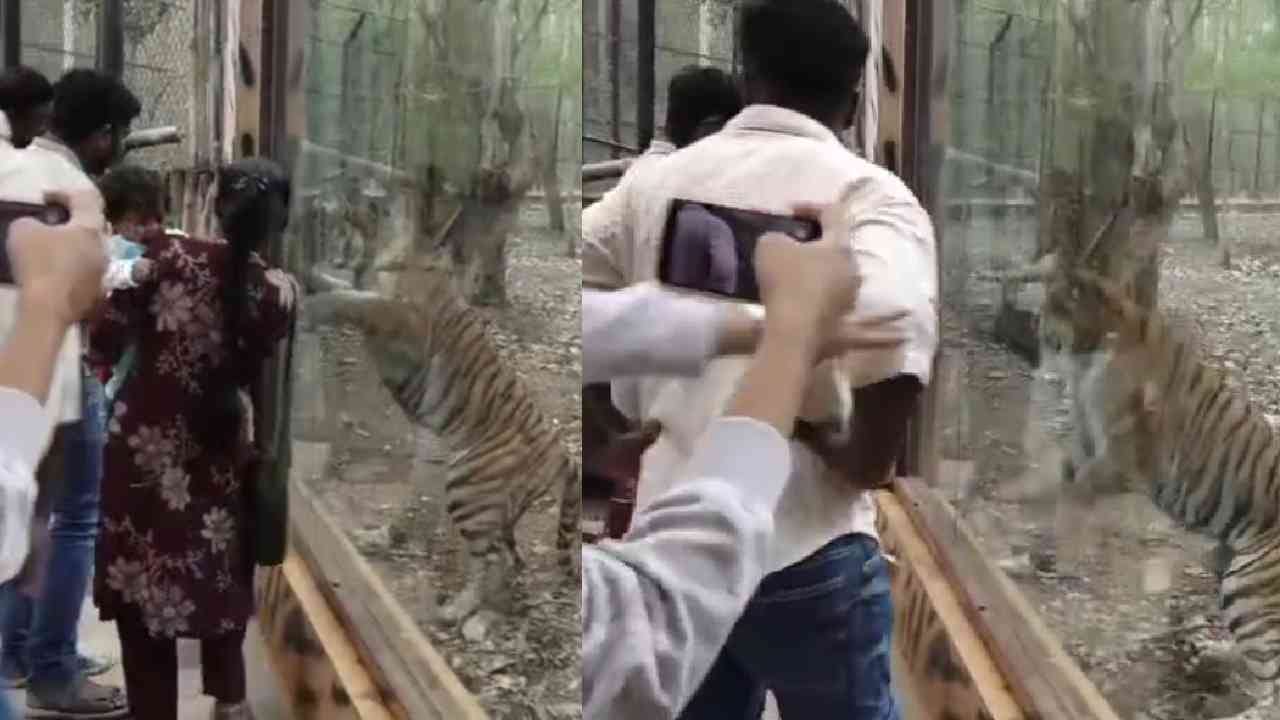 ಪ್ರವಾಸಿಗರ ಮೇಲೆ ಎರಗಲು ಯತ್ನಿಸಿದ ಹುಲಿ, ಇಲ್ಲಿದೆ ಭಯಾನಕ ವಿಡಿಯೋ