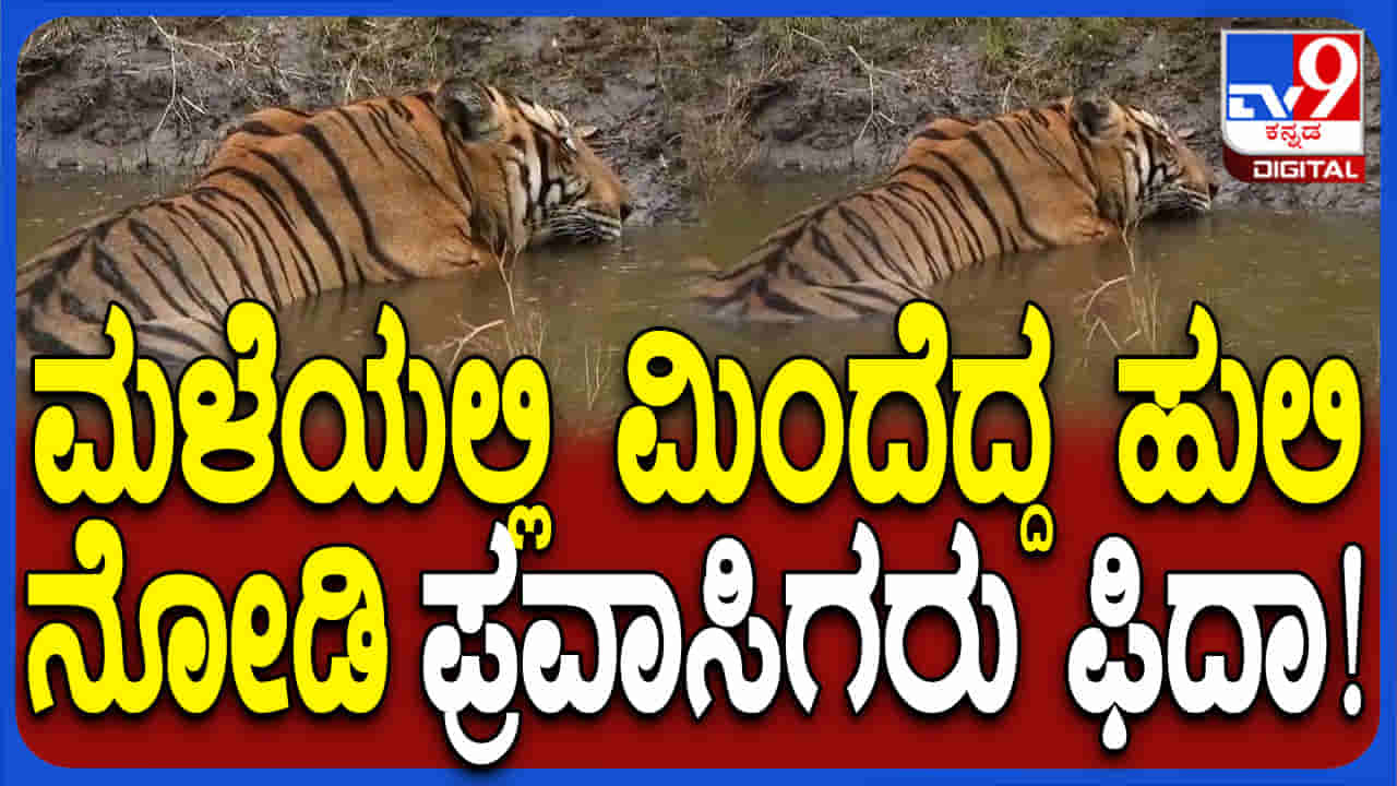 ಮಳೆಯಲ್ಲೂ ಹುಲಿರಾಯ ಕೆರೆಯಲ್ಲಿ ಸ್ವಿಮ್ಮಿಂಗ್: ಅಪರೂಪದ ವಿಡಿಯೋ ನೋಡಿ