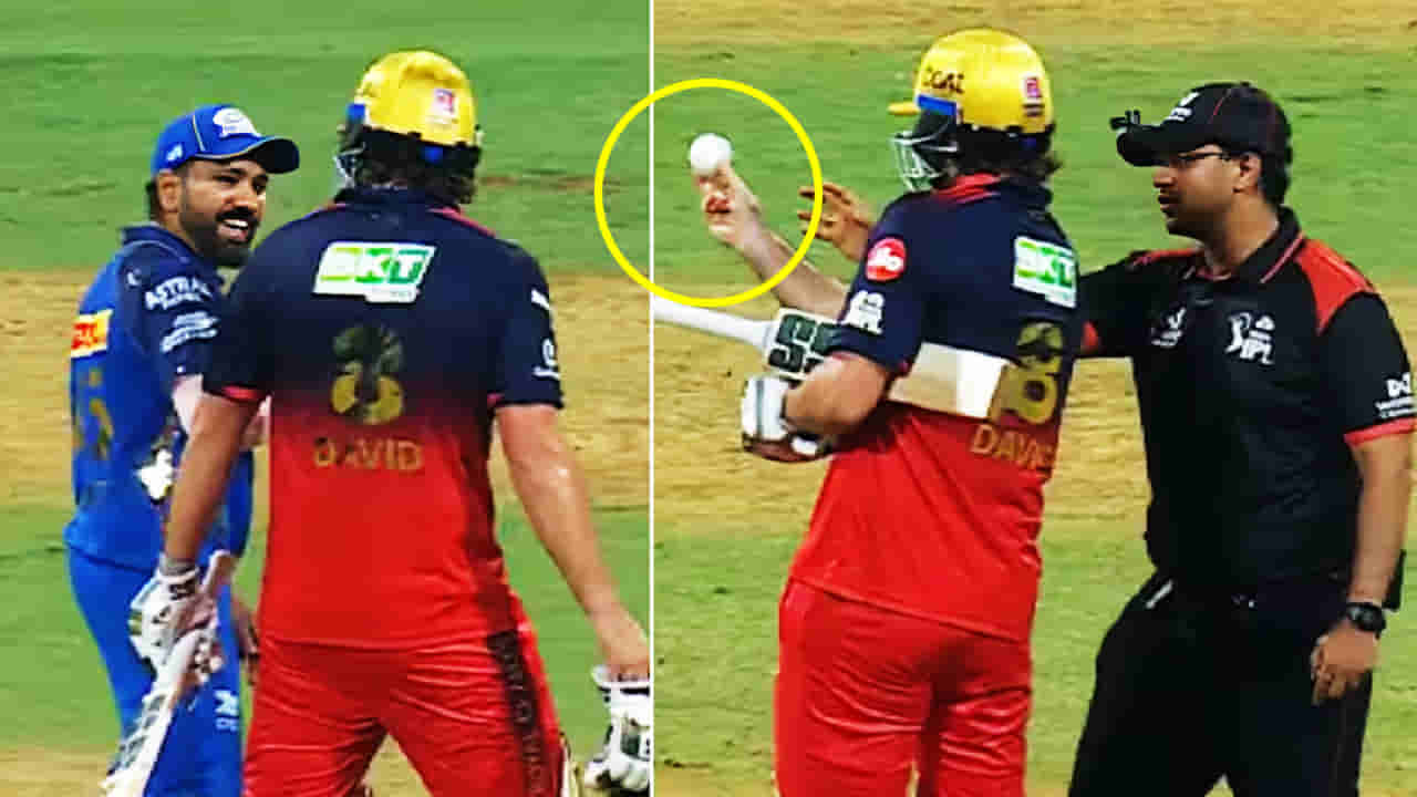 ಆದರೆ, ಅಂಪೈರ್ ಆಯ್ಕೆ ಮಾಡಿದ ಚೆಂಡನ್ನು ಕೈಗೆತ್ತಿಕೊಂಡ ಟಿಮ್ ಡೇವಿಡ್, ಅದರ ಆಕಾರ ಮತ್ತು ತೂಕವನ್ನು ಪರೀಕ್ಷಿಸಲು ಶುರು ಮಾಡಿದರು. ಅಂಪೈರ್ ಸ್ವರೂಪಾನಂದ್ ಕಣ್ಣೂರ್ ಅವರು “ಚೆಂಡನ್ನು ಕೊಡಿ” ಎಂದು ಪದೇ ಪದೇ ಕೇಳಿದರೂ, ಡೇವಿಡ್ ಚೆಂಡಿನ ಆಕಾರದ ಬಗ್ಗೆ ಅನುಮಾನ ವ್ಯಕ್ತಪಡಿಸುತ್ತಾ ಪರೀಕ್ಷಿಸುತ್ತಿದ್ದರು.