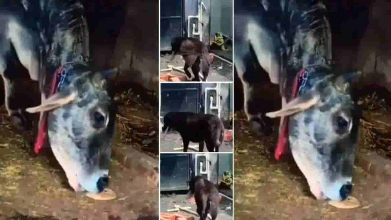 ವೈರಲ್ ಆಗಿರುವ ಈ ವೀಡಿಯೊದಲ್ಲಿ, ಒಂದು ಸಣ್ಣ ಕಪ್ಪು ನಾಯಿ ತನ್ನ ಬಾಯಿಯಲ್ಲಿ ಒಂದು ರೊಟ್ಟಿಯ ತುಂಡನ್ನು ಕಚ್ಚಿಕೊಂಡು ರಸ್ತೆಯಲ್ಲಿ ಹೋಗುತ್ತಿರುತ್ತದೆ. ವೀಡಿಯೊ ಚಿತ್ರೀಕರಿಸುತ್ತಿದ್ದ ವ್ಯಕ್ತಿಗೆ ಮೊದ ಮೊದಲು ಆ ನಾಯಿ ತನ್ನ ಆಹಾರವನ್ನು ತಿನ್ನಲು ಎಲ್ಲೋ ಸುರಕ್ಷಿತ ಜಾಗ ಹುಡುಕುತ್ತಿದೆ ಎಂದು ಅನ್ನಿಸಿತ್ತು. ಆದರೆ ಆ ನಾಯಿಯ ಗುರಿಯೇ ಬೇರೆಯಾಗಿತ್ತು.ಯಾವುದೇ ಭಯ ಅಥವಾ ಹಿಂಜರಿಕೆಯಿಲ್ಲದೆ ನೇರವಾಗಿ ಹಸುವಿನ ಬಳಿಗೆ ಹೋದ ಆ ನಾಯಿ, ಅತ್ಯಂತ ಗೌರವದಿಂದ ತನ್ನ ಬಾಯಲ್ಲಿದ್ದ ರೊಟ್ಟಿಯನ್ನು ಅದರ ಮುಂದೆ ಇಟ್ಟಿತ್ತು.