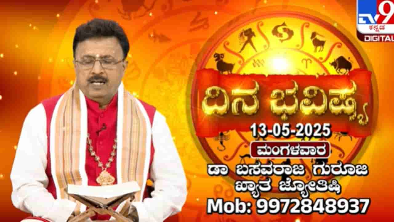 ಮೇ 13, 2025 ರ ಮಂಗಳವಾರದ ದಿನದ ರಾಶಿ ಫಲಗಳನ್ನು ಖ್ಯಾತ ಜ್ಯೋತಿಷಿ ಡಾ. ಬಸವರಾಜ ಗುರೂಜಿ ಅವರು ವಿಡಿಯೋದಲ್ಲಿ ವಿವರಿಸಿದ್ದಾರೆ. ಇಂದಿನ ಪಂಚಾಂಗ ವಿಶ್ವಾವಸು ಸಂವತ್ಸರ, ಉತ್ತರಾಯಣ, ವೈಶಾಖ ಮಾಸ, ವಸಂತ ಋತು, ಕೃಷ್ಣಪಕ್ಷ, ಪಾಡ್ಯ, ಪರಿಘ ಯೋಗ, ವಿಶಾಖ ನಕ್ಷತ್ರ ಮತ್ತು ಬಾಲವ ಕರಣ ಇದೆ ಎಂದು ಅವರು ತಿಳಿಸಿದ್ದಾರೆ. ರಾಹುಕಾಲ ಮಧ್ಯಾಹ್ನ 3:25 ರಿಂದ 5:00 ರವರೆಗೆ ಇರುತ್ತದೆ ಎಂದೂ ಸರ್ವಸಿದ್ಧಿ ಕಾಲ ಬೆಳಗ್ಗೆ 10:20 ರಿಂದ 12:16 ರವರೆಗೆ ಇರುತ್ತದೆ ಎಂದೂ ತಿಳಿಸಿದ್ದಾರೆ.