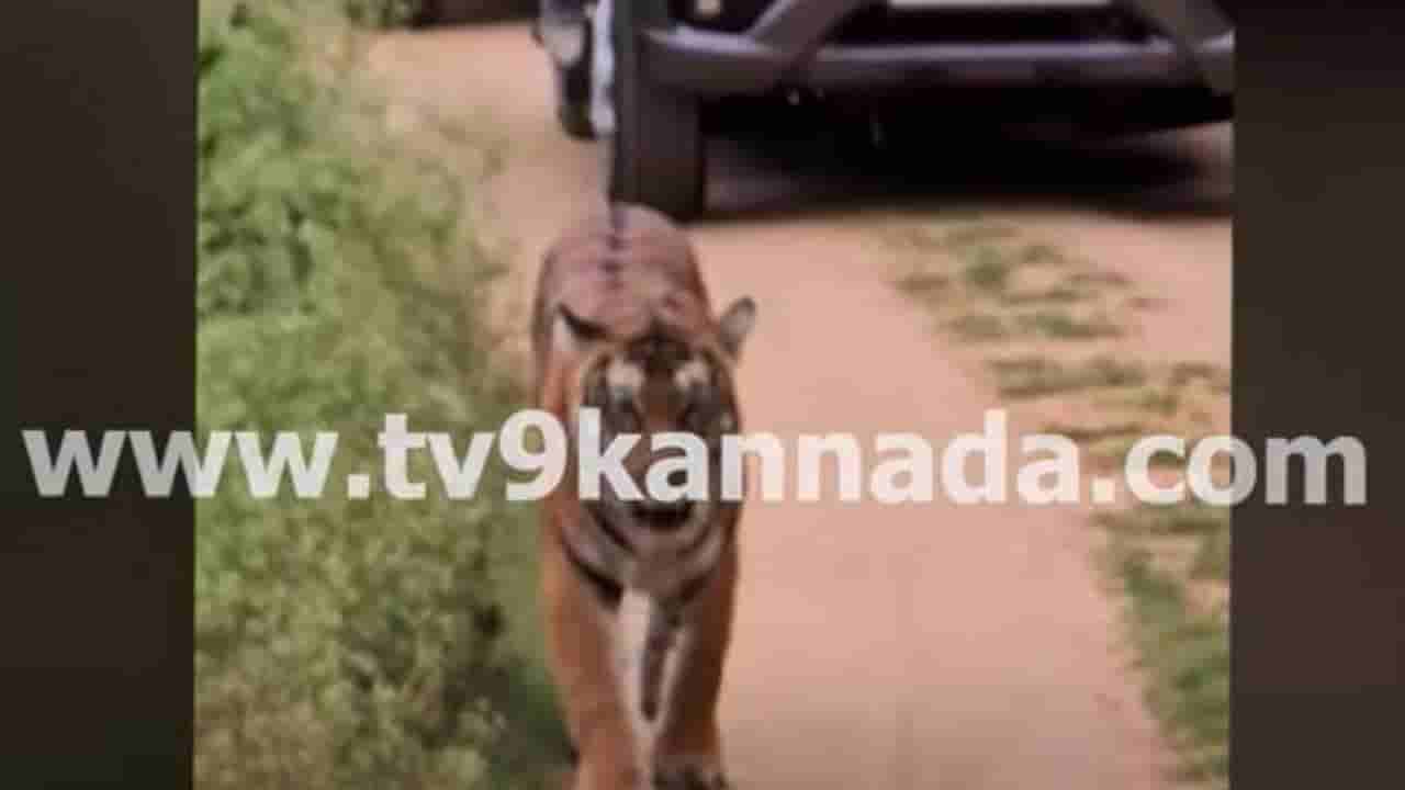 ಮೈಸೂರು, ಜೂನ್ 12: ನೀವು ಎಷ್ಟೇ ಲಕ್ಷ ಅಥವಾ ಕೋಟಿ ರೂಪಾಯಿಗಳ ವಾಹನದಲ್ಲಿ ಸಫಾರಿಗೆ ಅಂತ ಕಾಡಿಗೆ ಹೋದರೂ ಕಾಡಿನ ರಾಜ (king of forest) ಮಾತ್ರ ಹುಲಿ ಅಂತ ಈ ವಿಡಿಯೋ ನೋಡಿದರೆ ಸ್ಪಷ್ಟವಾಗಿ ಅರ್ಥವಾಗುತ್ತದೆ. ಮೈಸೂರ ಜಿಲ್ಲೆ ಹೆಚ್ ಡಿ ಕೋಟೆ ತಾಲೂಕಿನ ಕಬಿನಿ ಹಿನ್ನೀರಿನ ದಮ್ಮನಕಟ್ಟೆ ಅರಣ್ಯಪ್ರದೇಶದಲ್ಲಿ ಸಫಾರಿಗೆಂದು ಹೋದ ಪ್ರವಾಸಿಗರಿಗೆ ಹುಲಿರಾಯ ಎದುರಾಗಿದ್ದಾನೆ. ರಸ್ತೆಯ ಒಂದು ಬದಿಯಲ್ಲಿ ಹುಲಿ ತನ್ನ ಸಹಜ ಗತ್ತಿನಲ್ಲಿ ಗಂಭೀರವಾಗಿ ನಡೆದು ಬರುತ್ತಿರುವುದನ್ನು ನೋಡುತ್ತಿದ್ದರೆ ವನ್ಯಜೀವಿ ಬಗ್ಗೆ ಅಕ್ಕರೆ ಹುಟ್ಟುತ್ತದೆ. ಅದು ತನ್ನ ಹಿಂದೆ ಬರುತ್ತಿರುವ ವಾಹನಗಳಿಗೆ ಸೈಡ್ ನೀಡುತ್ತಿಲ್ಲ! ನನ್ನ ಹಾದಿ ನನ್ನದು, ನನ್ನ ನಡಿಗೆ ನನ್ನದು, ಈ ಕಾಡು ಕೂಡ ನನ್ನದು ಅನ್ನುವಂತಿದೆ ಹುಲಿಯ ಗತ್ತು.