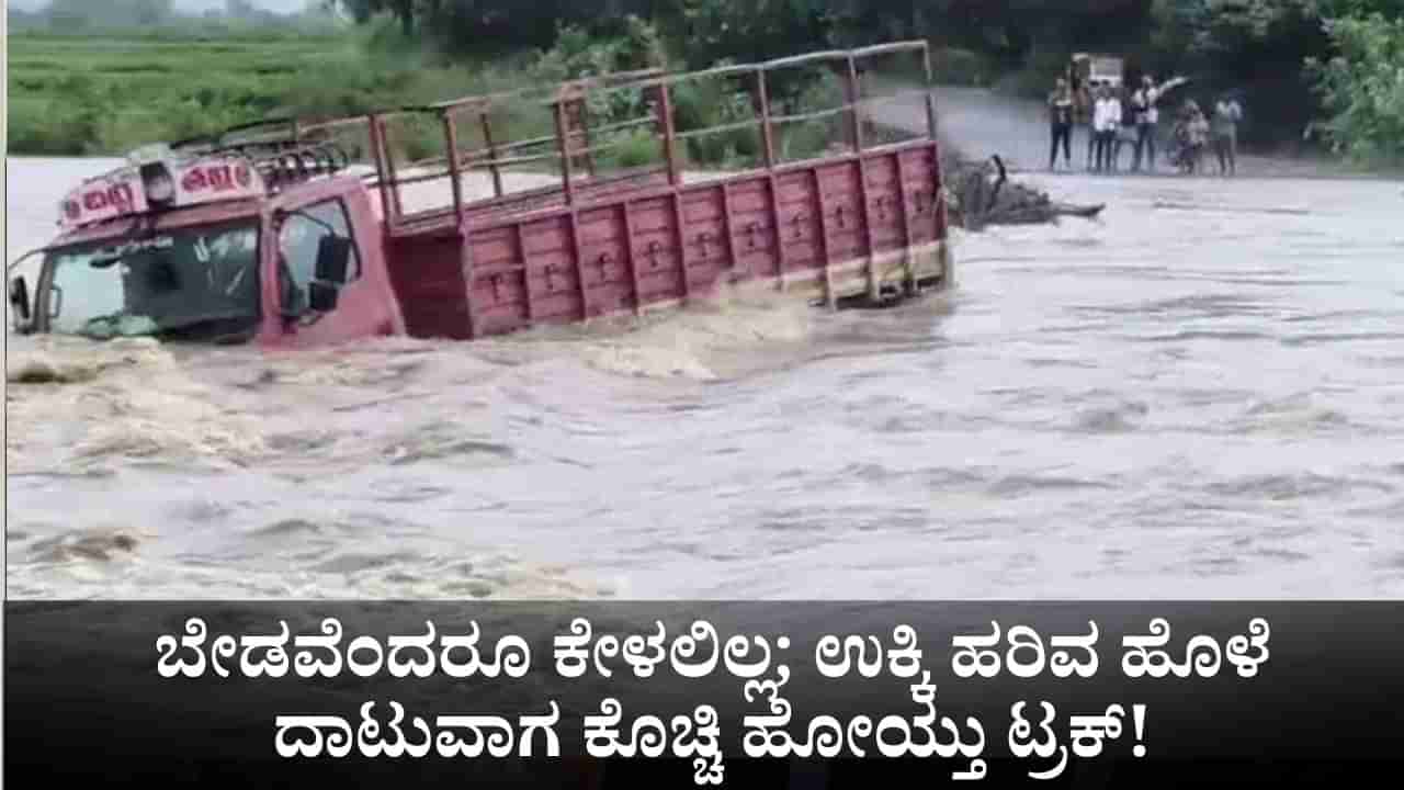 ಊರಿನವರು ಬೇಡವೆಂದರೂ ಕೇಳಲಿಲ್ಲ; ಉಕ್ಕಿ ಹರಿವ ಹೊಳೆ ದಾಟುವಾಗ ಕೊಚ್ಚಿ ಹೋಯ್ತು ಟ್ರಕ್!