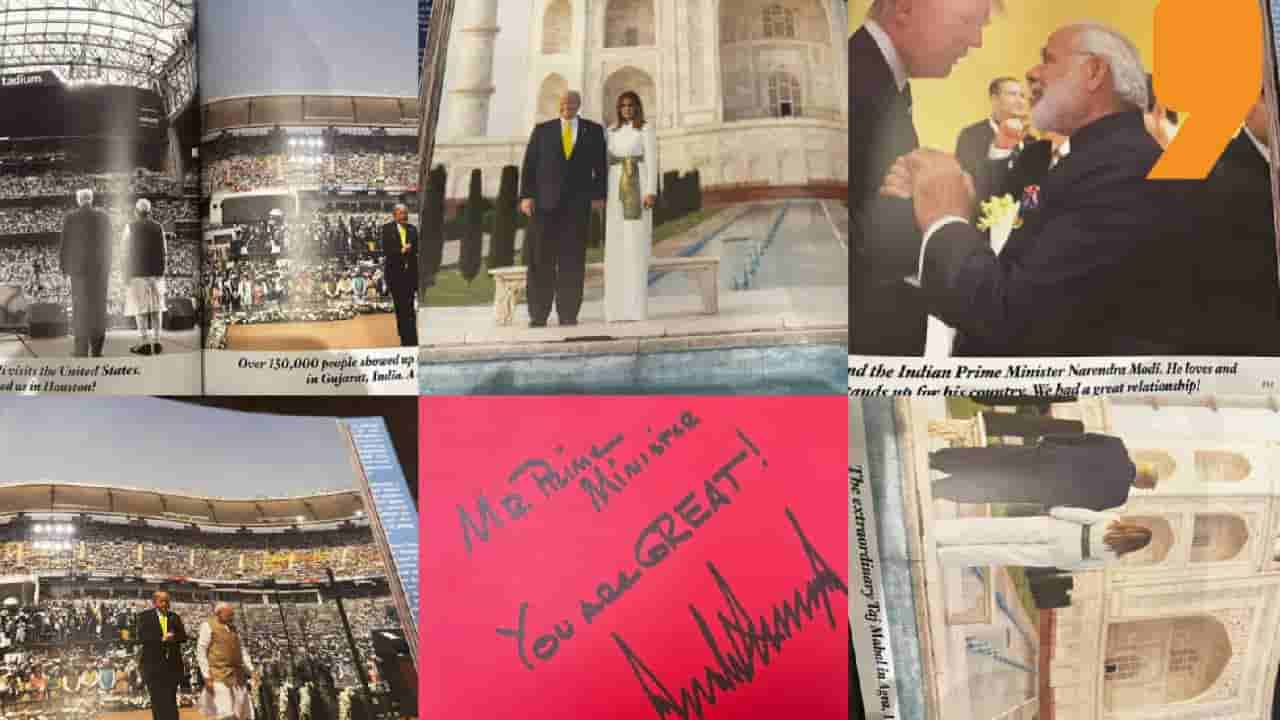 ಪ್ರಧಾನಿ ನರೇಂದ್ರ ಮೋದಿ ಫ್ರಾನ್ಸ್ ಬಳಿಕ ಅಮೆರಿಕ ಪ್ರವಾಸದಲ್ಲಿದ್ದಾರೆ. ಟ್ರಂಪ್ ಮೋದಿಗೆ ಸ್ಮರಣಿಕೆಯಾಗಿ ಪುಸ್ತಕವೊಂದನ್ನು ಉಡುಗೊರೆಯಾಗಿ ನೀಡಿದರು. ಅವರ್ ಜರ್ನಿ ಟುಗೆದರ್ ಎಂಬ ವಿಶೇಷ ಪುಸ್ತಕವನ್ನು ಉಡುಗೊರೆಯಾಗಿ ನೀಡಿದ್ದಾರೆ. ಮಿಸ್ಟರ್ ಪ್ರೈಮ್ ಮಿನಿಸ್ಟರ್ ಯು ಆರ್ ಗ್ರೇಟ್ ಎಂದು ಬರೆಯುವ ಮೂಲಕ, ಟ್ರಂಪ್ ಸಹಿ ಮಾಡಿ ಆ ಪುಸ್ತಕವನ್ನು ಮೋದಿಗೆ ಉಡುಗೊರೆಯಾಗಿ ಕೊಟ್ಟರು. ಟ್ರಂಪ್ ಅವರ ಮೊದಲ ಅವಧಿಯನ್ನು ವಿವರಿಸುವ ಈ ಫೋಟೋಬುಕ್, 2019 ರ ಸೆಪ್ಟೆಂಬರ್ನಲ್ಲಿ ಪ್ರಧಾನಿ ಮೋದಿ ಅವರು ಅಮೆರಿಕಕ್ಕೆ ದ್ವಿಪಕ್ಷೀಯ ಭೇಟಿಯಲ್ಲಿದ್ದಾಗ ನಡೆದ ಹೌಡಿ ಮೋದಿ ಕಾರ್ಯಕ್ರಮ ಸೇರಿದಂತೆ ಪ್ರಮುಖ ಘಟನೆಗಳ ಚಿತ್ರಗಳನ್ನು ಒಳಗೊಂಡಿದೆ.