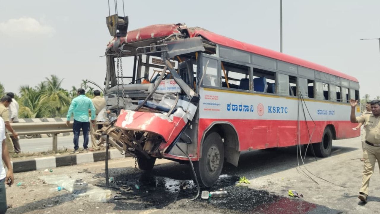 ವೇಗವಾಗಿ ಹೋಗುತ್ತಿದ್ದ ಕ್ಯಾಂಟರ್ ಟೈರ್ ಸ್ಫೋಟ! ಕೆಎಸ್ಆರ್ಟಿಸಿ ಬಸ್ ಡಿಕ್ಕಿಯಾಗಿ ಹಲವು ಪ್ರಯಾಣಿಕರಿಗೆ ಗಾಯ