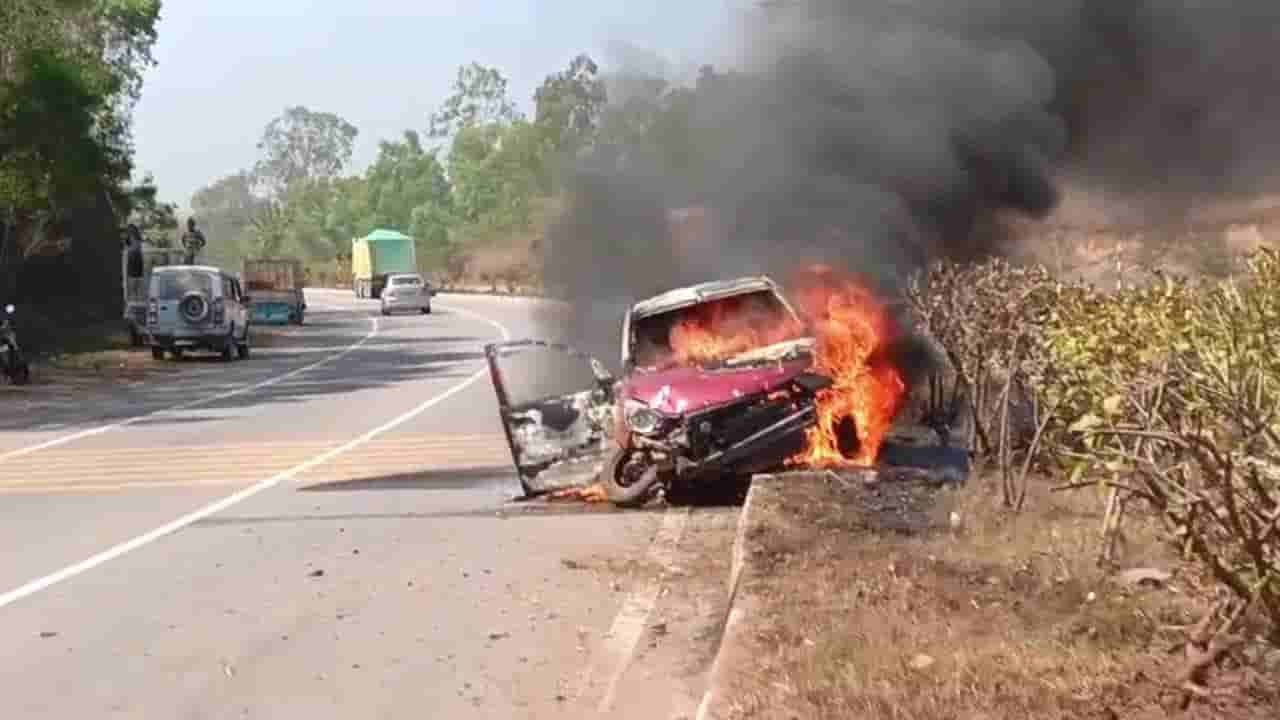ಡಿವೈಡರ್ಗೆ ಡಿಕ್ಕಿ ಹೊಡೆದ ಕಾರು; ಕ್ಷಣಾರ್ಧದಲ್ಲಿ ಬೆಂಕಿಗಾಹುತಿ!