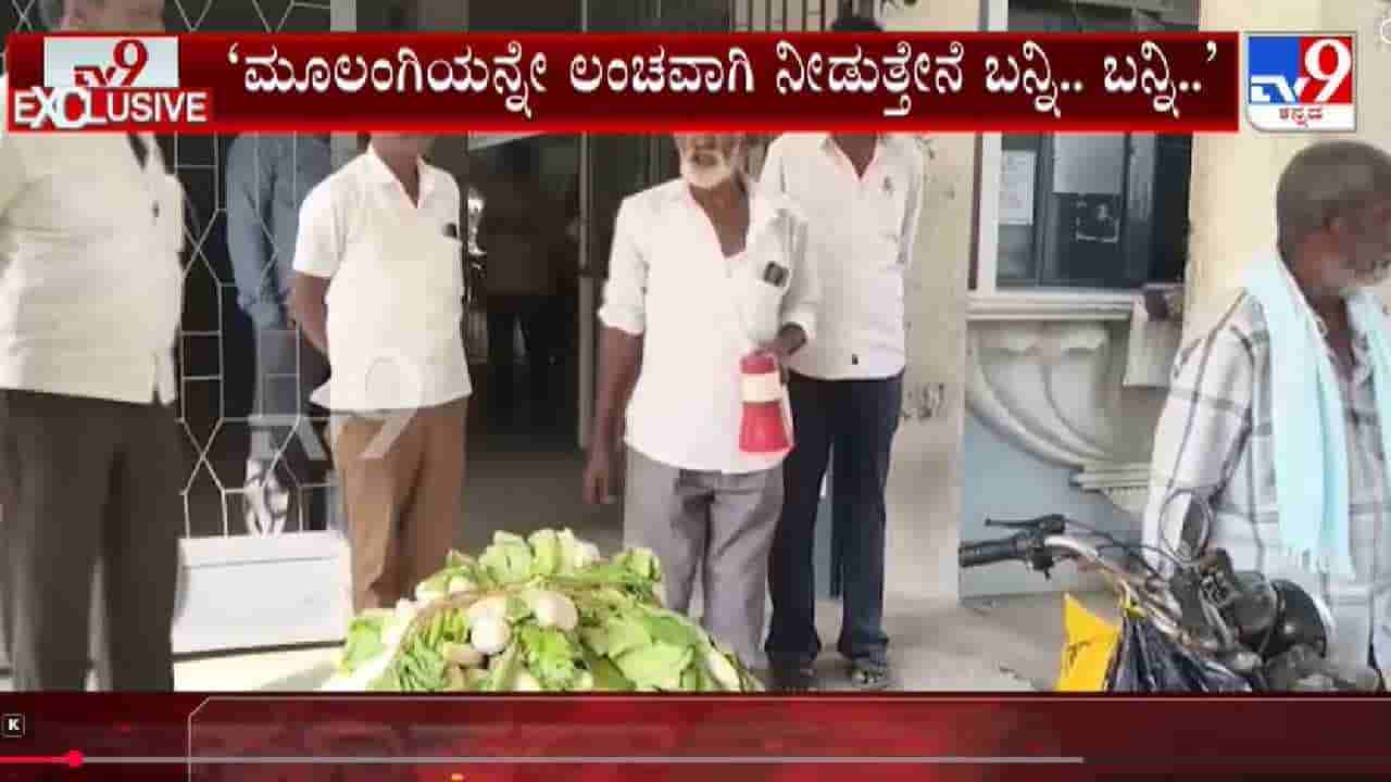 ಲಂಚ ನೀಡಲು ಹಣವಿಲ್ಲದ್ದಕ್ಕೆ ಬೆಳೆದ ಮೂಲಂಗಿಯನ್ನೇ ತಾಲೂಕು ಕಚೇರಿಗೆ ತಂದ ರೈತ