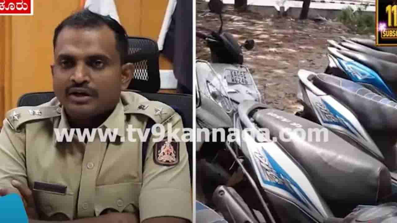 ತುಮಕೂರು, ಮೇ 16: ನಗರದ ನ್ಯೂ ಟೌನ್ ಪೊಲೀಸ್ ಠಾಣೆಯ ಸಿಬ್ಬಂದಿ ಒಬ್ಬ ಕುಖ್ಯಾತ (notorious) ಬೈಕ್ ಕಳ್ಳನನ್ನು ಬಂಧಿಸಿ ಅವನಿಂದ ಸುಮಾರು ₹11,23,000 ಮೌಲ್ಯಯ ದ್ವಿಚಕ್ರ ವಾಹನಗಳನ್ನು ವಶಪಡಿಸಿಕೊಳ್ಳಲಾಗಿದೆ ಎಂದು ತುಮಕೂರು ಪೊಲೀಸ್ ವರಿಷ್ಠಾಧಿಕಾರಿ ಅಶೋಕ್ ವಿಕೆ ಹೇಳಿದರು. ಬಂಧಿತ ಕಳ್ಳ ಆಂಧ್ರ ಪ್ರದೇಶ ಮೂಲದವನಾಗಿದ್ದು, 32-ವರ್ಷ ವಯಸ್ಸಿನ ಇವನ ಹೆಸರು ಚಿತ್ತಪ್ಪಗಾರಿ ಆನಂದ್ ಆಗಿದೆ. ರೈಲು ನಿಲ್ದಾಣದ ಮುಂದೆ ಪಾರ್ಕ್ ಮಾಡಿರುತ್ತಿದ್ದ ಸ್ಕೂಟರ್ ಮತ್ತು ಬೈಕ್ಗಳನ್ನು ಕದಿಯುತ್ತಿದ್ದ ಎಂದು ಪೊಲೀಸ್ ಅಧಿಕಾರಿ ಹೇಳುತ್ತಾರೆ. ಕಳೆದ 6 ತಿಂಗಳು ಅವಧಿಯಲ್ಲಿ ಆನಂದ್ 30 ದ್ವಿಚಕ್ರವಾಹನಗಳನ್ನು ಕದ್ದಿದ್ದಾನೆ.