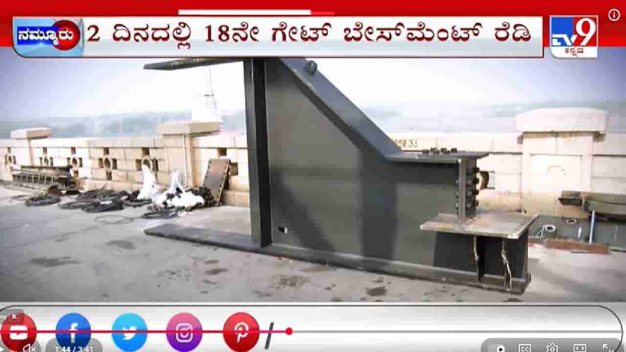 ತುಂಗಭದ್ರಾ ಡ್ಯಾಂಗೆ ಹೊಸ ಕ್ರಸ್ಟ್ ಗೇಟ್ ಭಾಗ್ಯ, 2 ದಿನದಲ್ಲಿ 18ನೇ ಗೇಟ್ ಬೇಸಮೆಂಟ್ ರೆಡಿ