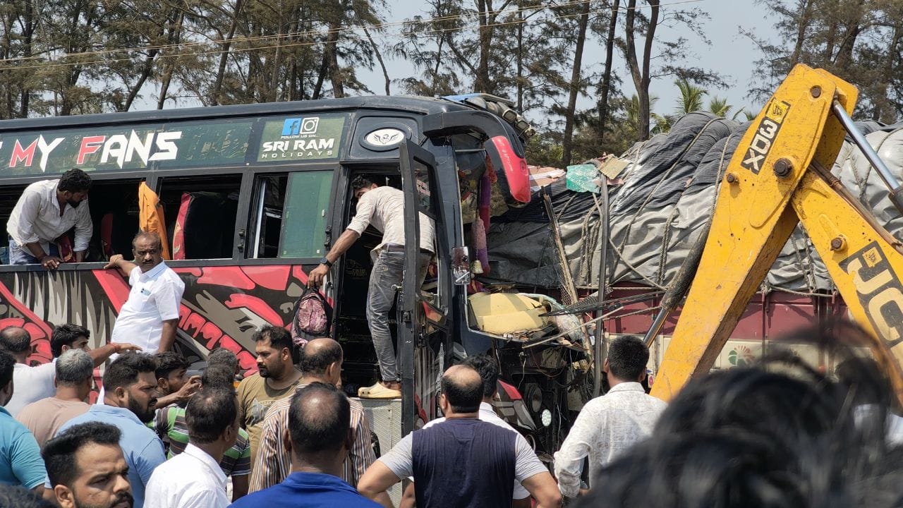 ಉಡುಪಿಯಲ್ಲಿ ಭೀಕರ ಅಪಘಾತ: ಟ್ಯಾಂಕರ್ ಹಾಗೂ ಟ್ರಕ್ಗೆ ಡಿಕ್ಕಿಯಾದ ಪ್ರವಾಸಿ ಬಸ್; ಇಬ್ಬರು ವಿದ್ಯಾರ್ಥಿಗಳು ಸಾವು!