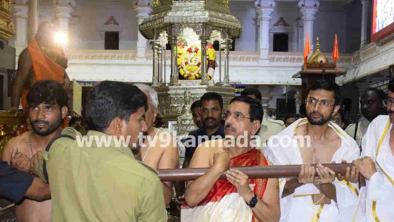 ರಾಯಚೂರು, ಜೂನ್ 17: ಕೇಂದ್ರ ಸಚಿವ ಪ್ರಲ್ಹಾದ್ ಜೋಶಿ ಮಂಗಳವಾರ ಬೆಳಗ್ಗೆ ಮಂತ್ರಾಲಯಕ್ಕೆ ಭೇಟಿ ನೀಡಿದರು. ಮಂತ್ರಾಲಯ ಭೇಟಿ ಬಳಿಕ ಮೊದಲು ಮಂಚಾಲಮ್ಮ ದೇವಿ ದರ್ಶನ ಪಡೆದರು. ನಂತರ ಉತ್ಸವ ಹಾಗೂ ರಾಯರ ಪಾದಪೂಜೆಯಲ್ಲಿ ಭಾಗಿಯಾದರು. ಶ್ರೀಮಠದ ರಥೋತ್ಸವದಲ್ಲಿಯೂ ಕೇಂದ್ರ ಸಚಿವರು ಭಾಗಿಯಾಗಿ, ರಥವನ್ನು ಎಳೆದು ಸೇವೆ ಸಲ್ಲಿಸಿದರು. ಮಂತ್ರಾಲಯ ಪೀಠಾಧಿಪತಿ ಸುಬುಧೇಂದ್ರ ತೀರ್ಥರ ಆಶಿರ್ವಾದ ಪಡೆದರು. ಈ ವೇಳೆ, ಕೇಂದ್ರ ಸಚಿವ ಜೋಶಿ ಅವರನ್ನು ಶ್ರೀಗಳು ಸನ್ಮಾನಿಸಿ, ಆಶೀರ್ವದಿಸಿದರು.