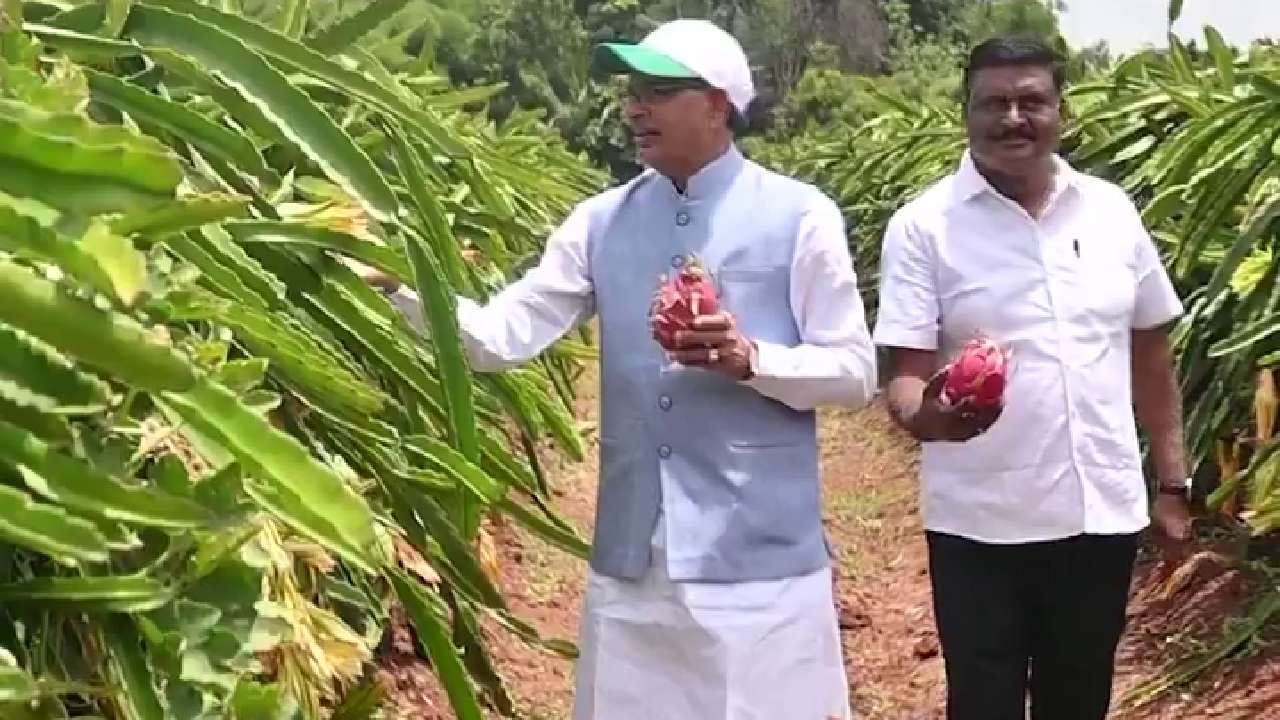 ಬೆಂಗಳೂರು: ಹೇಸರಘಟ್ಟದಲ್ಲಿನ ಡ್ರ್ಯಾಗನ್ ಫ್ರೂಟ್ ಜಮೀನಿಗೆ ಭೇಟಿ ನೀಡಿದ ಕೇಂದ್ರ ಸಚಿವ ಶಿವರಾಜ್ ಸಿಂಗ್ ಚೌಹಾಣ್