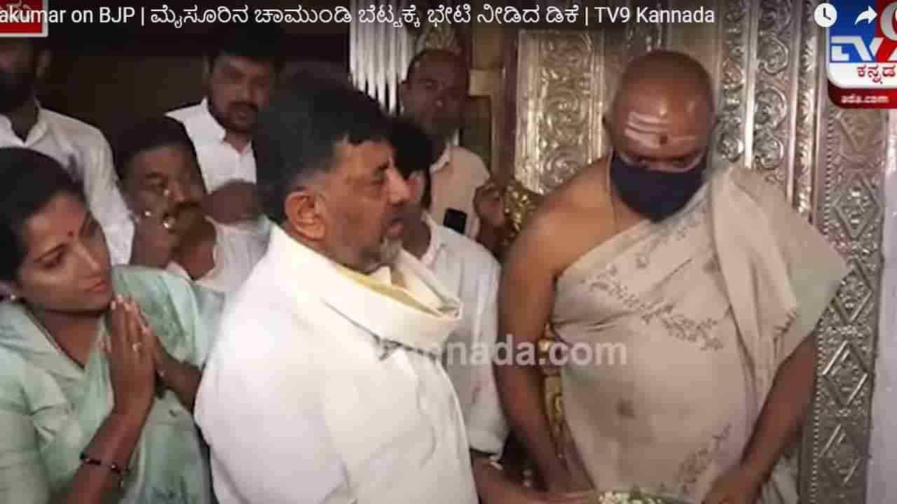 ಪಾದಯಾತ್ರೆ ಆರಂಭಿಸುವ ಮೊದಲು ಮೈಸೂರಲ್ಲಿ ಚಾಮುಂಡೇಶ್ವರಿ ಸನ್ನಿಧಿಗೆ ಮಾಸ್ಕ್ ಧರಿಸದೆ ತೆರಳಿ ಪೂಜೆ ಸಲ್ಲಿಸಿದರು ಶಿವಕುಮಾರ