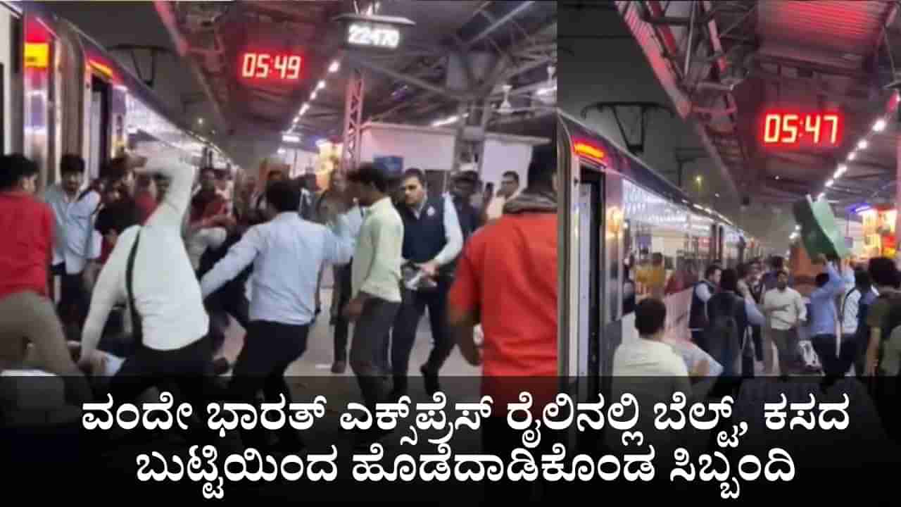 ವಂದೇ ಭಾರತ್ ಎಕ್ಸ್ಪ್ರೆಸ್ ರೈಲಿನಲ್ಲಿ ಬೆಲ್ಟ್, ಕಸದ ಬುಟ್ಟಿಯಿಂದ ಹೊಡೆದಾಡಿಕೊಂಡ ಸಿಬ್ಬಂದಿ