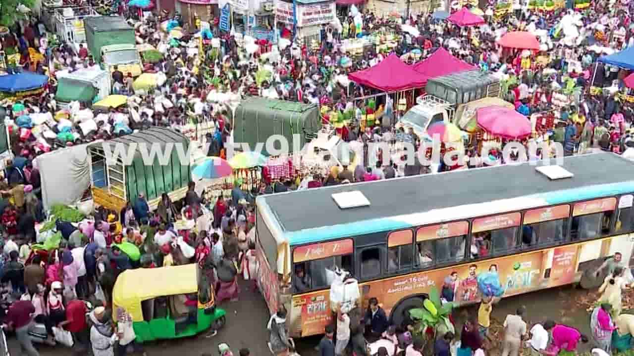 ಬೆಂಗಳೂರಿನಲ್ಲಿ ವರಮಹಾಲಕ್ಷ್ಮೀ ಹಬ್ಬಕ್ಕೆ ಸಿದ್ಧತೆ ಜೋರಾಗಿದೆ. ಕೆಆರ್ ಮಾರುಕಟ್ಟೆಯಲ್ಲಿ ಖರೀದಿ ಭರಾಟೆ ಗುರುವಾರ ಬೆಳಗ್ಗೆಯೇ ಜೋರಾಗಿದ್ದು, ಜನ ದಟ್ಟಣೆ ಹಾಗೂ ಸಂಚಾರ ದಟ್ಟಣೆ ವಿಪರೀತವಾಗಿದೆ. ಮಾರುಕಟ್ಟೆ ಫ್ಲೈಓವರ್ ಮೇಲೂ ಎಲ್ಲೆಂದರಲ್ಲಿ ವಾಹನಗಳನ್ನು ಪಾರ್ಕ್ ಮಾಡಿರುವುದರಿಂದ ಟ್ರಾಫಿಕ್ ಜಾಮ್ ಉಂಟಾಯಿತು. ಮಾರುಕಟ್ಟೆಯ ಜನಜಂಗುಳಿಯ ವಿಡಿಯೋ ಇಲ್ಲಿದೆ.
