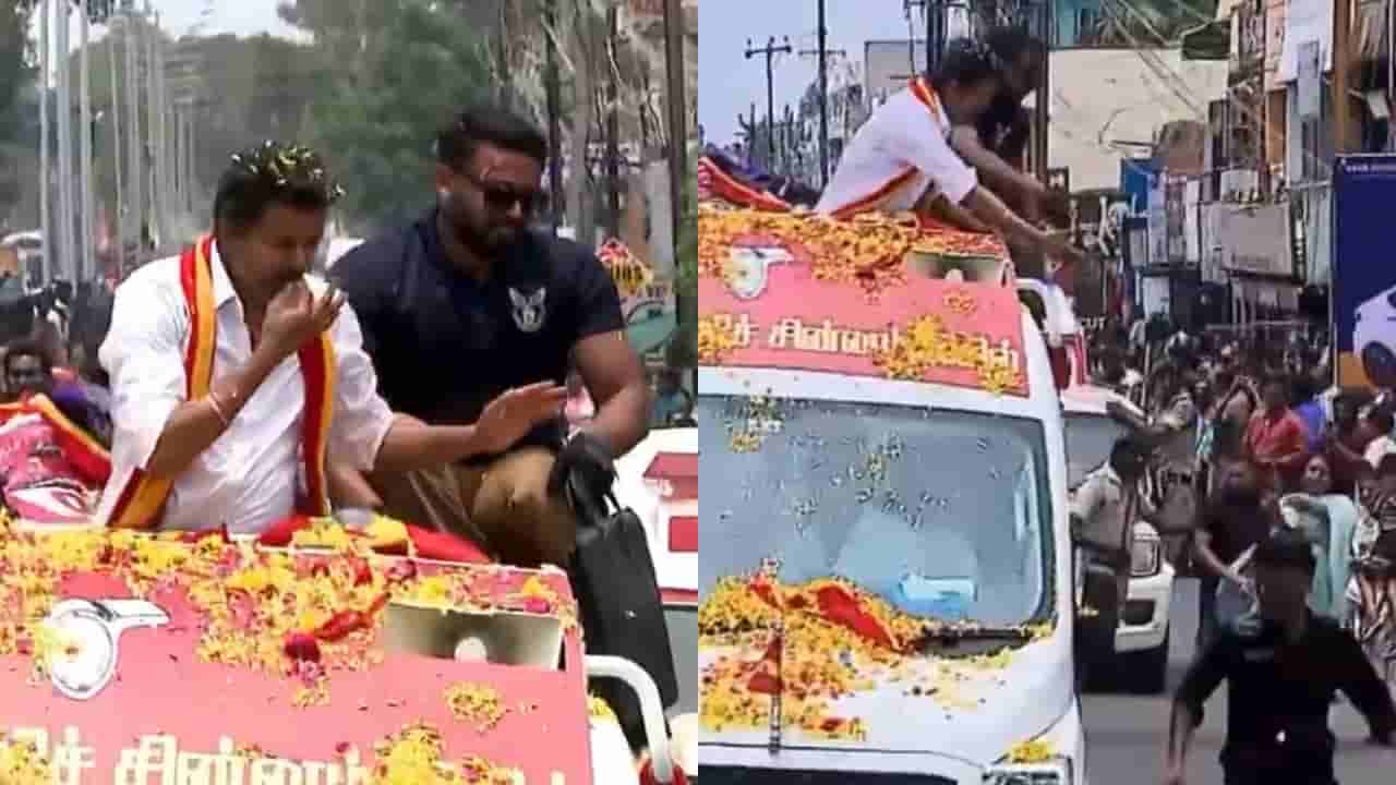 ನಟ ದಳಪತಿ ವಿಜಯ್ (Thalapathy Vijay), ರಾಜಕೀಯಕ್ಕೆ ಎಂಟ್ರಿ ಕೊಟ್ಟಿದ್ದು ತಮಿಳುನಾಡು ರಾಜ್ಯದಾದ್ಯಂತ ಭರ್ಜರಿ ಚುನಾವಣಾ ಪ್ರಚಾರ ಮಾಡುತ್ತಿದ್ದಾರೆ. ಅವರ ಟಿವಿಕೆ ಪಕ್ಷಕ್ಕೆ ಅವರೇ ಸ್ಟಾರ್ ಪ್ರಚಾರಕ ಆಗಿದ್ದು ರಾಜ್ಯದೆಲ್ಲೆಡೆ ರೋಡ್ ಶೋ ಮಾಡುತ್ತಿದ್ದಾರೆ. ವಿಶೇಷವಾಗಿ ವಿನ್ಯಾಸ ಮಾಡಿದ ತೆರೆದ ವಾಹನದಲ್ಲಿ ಓಡಾಡುತ್ತಿದ್ದಾರೆ. ವಿಜಯ್ ಹೋದಲ್ಲೆಲ್ಲ ಅವರನ್ನು ನೋಡಲು ಭಾರಿ ಸಂಖ್ಯೆಯ ಜನ ಸೇರುತ್ತಿದ್ದಾರೆ. ಇದೀಗ ಪುದುಚೆರಿಯ ರೋಡ್ ಶೋ ವೇಳೆ ವಿಜಯ್, ತೆರೆದ ವಾಹನದಲ್ಲಿ ಹೋಗುತ್ತಿದ್ದಾಗ ಅದರ ಹತ್ತಿರ ಬಂದ ವೃದ್ಧನೋರ್ವರನ್ನು ಭದ್ರತೆಯವನು ತಳ್ಳಿದ್ದಾನೆ, ಇದರಿಂದ ಸಿಟ್ಟಾದ ವಿಜಯ್, ಕೂಡಲೇ ಭದ್ರತೆಯವನನ್ನು ಬೈದು ಪಕ್ಕಕ್ಕೆ ಸರಿಯುವಂತೆ ಹೇಳಿದ್ದಾರೆ. ವಿಡಿಯೋ ನೋಡಿ…