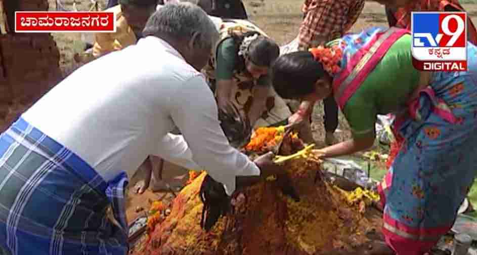 ಚಾಮರಾಜನಗರದಲ್ಲಿ ಹಾವಿನ ಹುತ್ತಕ್ಕೆ ರಕ್ತ ಅರ್ಪಿಸುತ್ತಿರುವ ಭಕ್ತರು