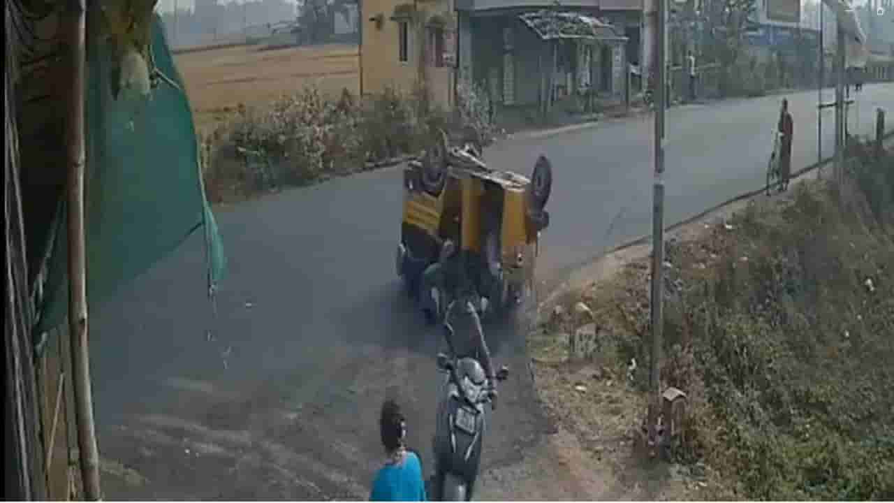 ಸ್ಕೂಟರ್ಗೆ ಡಿಕ್ಕಿ ತಪ್ಪಿಸಲು ಹೋಗಿ ರಿಕ್ಷಾ ಪಲ್ಟಿ; ಸಿಸಿಟಿವಿ ದೃಶ್ಯ ಇಲ್ಲಿದೆ ನೋಡಿ