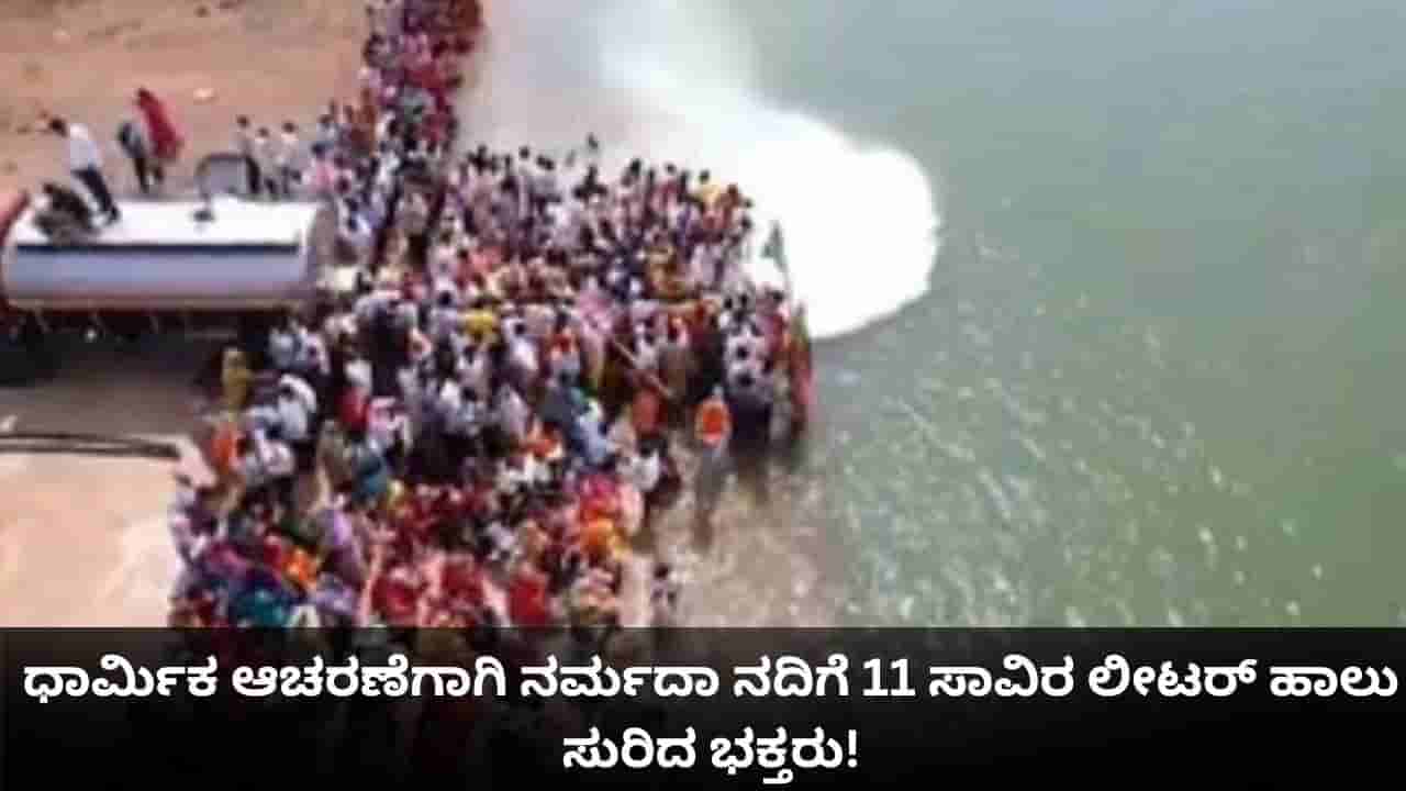 ಧಾರ್ಮಿಕ ಆಚರಣೆಯ ಸಲುವಾಗಿ ನರ್ಮದಾ ನದಿಗೆ ಸುಮಾರು 11,000 ಲೀಟರ್ ಹಾಲನ್ನು ಸುರಿಯುತ್ತಿರುವ ವಿಡಿಯೋ ವೈರಲ್ ಆಗಿದೆ. ಈ ವಿಡಿಯೋ ಸಾಮಾಜಿಕ ಮಾಧ್ಯಮದಲ್ಲಿ ವ್ಯಾಪಕ ಚರ್ಚೆ ಮತ್ತು ತೀವ್ರ ಟೀಕೆಗೆ ಕಾರಣವಾಗಿದೆ. ಮಧ್ಯಪ್ರದೇಶದಲ್ಲಿ ನಡೆದಿದೆ ಎನ್ನಲಾದ ಈ ಘಟನೆಯು ಸಾಂಪ್ರದಾಯಿಕ ಆಧ್ಯಾತ್ಮಿಕ ಆಚರಣೆ ಅಥವಾ ಪ್ರತಿಜ್ಞೆಯ ಈಡೇರಿಕೆಯ ಭಾಗವಾಗಿ ಪವಿತ್ರವಾದ ನದಿಗೆ ಟ್ಯಾಂಕರ್ಗಟ್ಟಲೆ ಹಾಲನ್ನು ನೇರವಾಗಿ ಸುರಿಯುವ ದೊಡ್ಡ ಆಚರಣೆಯಾಗಿದೆ. ಅಂದಾಜಿನ ಪ್ರಕಾರ, ಇಷ್ಟು ಪ್ರಮಾಣದ ಹಾಲಿನ ಬೆಲೆ 5.5 ಲಕ್ಷ ರೂ.ನಿಂದ 7.7 ಲಕ್ಷ ರೂ.ವರೆಗೆ ಇರಲಿದೆ ಎನ್ನಲಾಗಿದೆ.