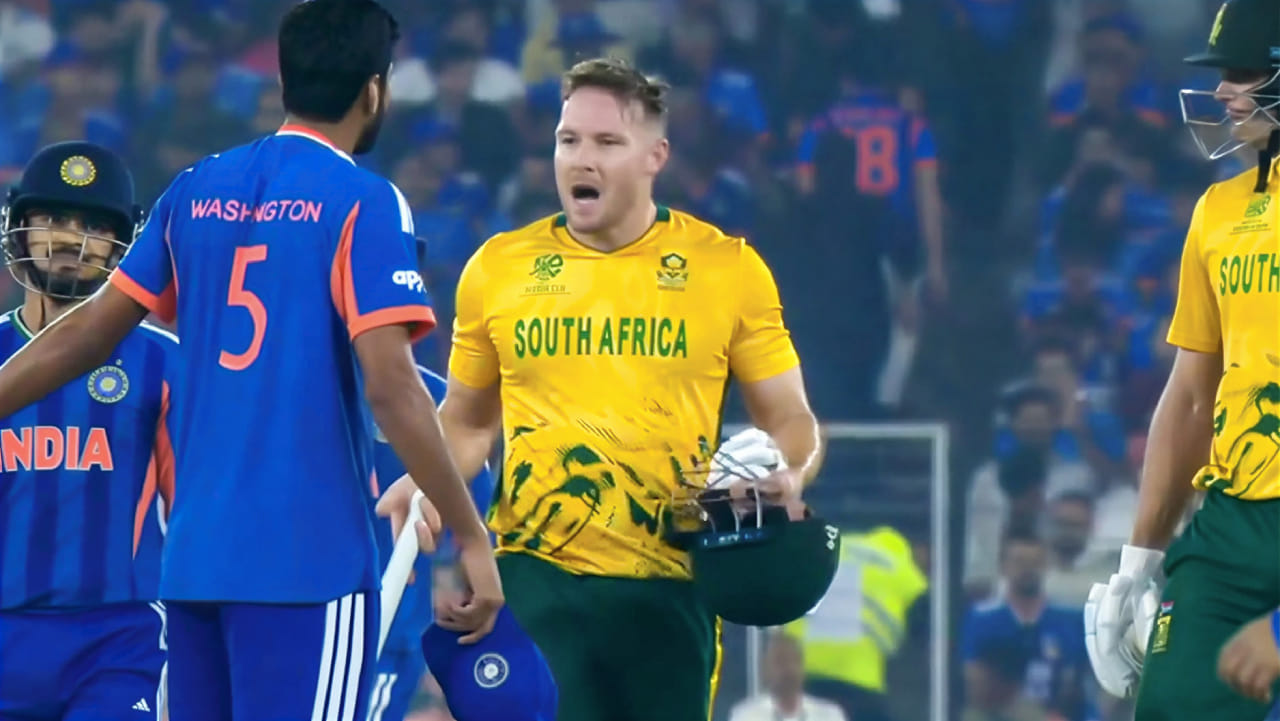 ಇದನ್ನು ಗಮನಿಸಿದ ಡೇವಿಡ್ ಮಿಲ್ಲರ್ ಓವರ್ ಮುಗಿದ ವಾಷಿಂಗ್ಟನ್ ಸುಂದರ್ ಜೊತೆ ವಾಗ್ವಾದಕ್ಕಿಳಿದರು. ಅಲ್ಲದೆ ಹರಿಹಾಯುವ ಮೂಲಕ ಸುಂದರ್ನತ್ತ ಮಿಲ್ಲರ್ ಮುನ್ನುಗ್ಗುತ್ತಿದ್ದಂತೆ ಅಂಪೈರ್ ಕ್ರಿಸ್ ಗಾಫೆನಿ, ಟೀಮ್ ಇಂಡಿಯಾ ವಿಕೆಟ್ ಕೀಪರ್ ಇಶಾನ್ ಕಿಶನ್ ಮತ್ತು ಟ್ರಿಸ್ಟನ್ ಸ್ಟಬ್ಸ್ ಮಧ್ಯ ಪ್ರವೇಶಿಸಿ ಪರಿಸ್ಥಿತಿಯನ್ನು ತಿಳಿಗೊಳಿಸಿದರು.