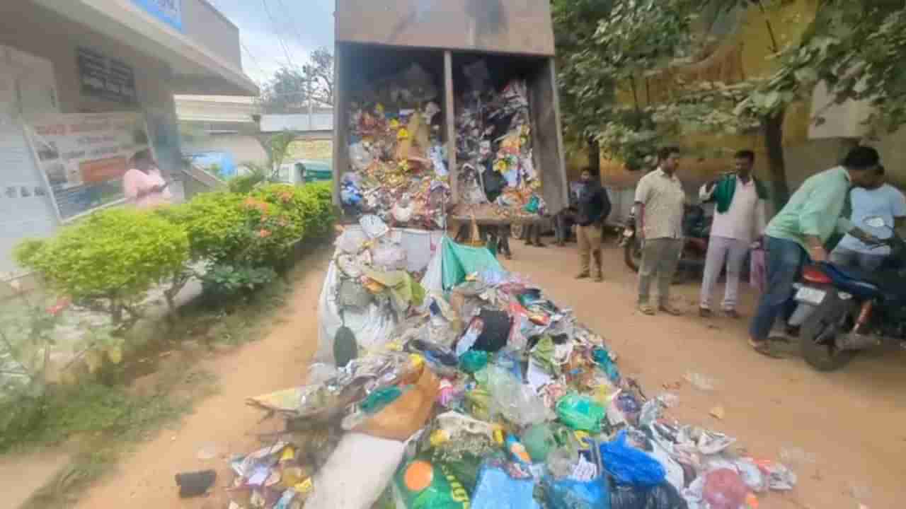 ಸ್ಮಶಾನದಲ್ಲಿ ತ್ಯಾಜ್ಯ ಹಾಕಿದ್ದಕ್ಕೆ ಪಂಚಾಯತ್ ಮುಂದೆ ಕಸ ಸುರಿದು ಪ್ರತಿಭಟನೆ