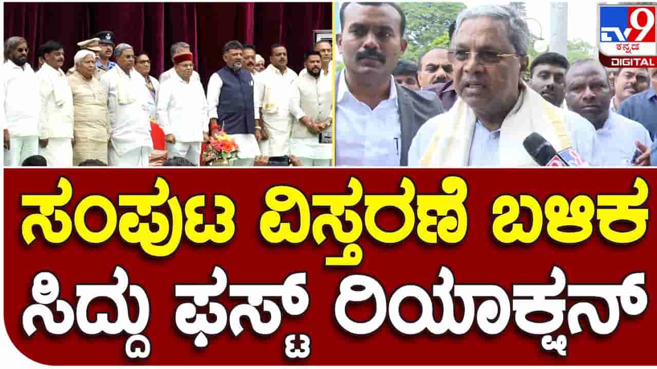 ಬೆಂಗಳೂರು: ಸಂಪುಟ ವಿಸ್ತರಣೆಯ ನಂತರ ಖುಷಿಯಿಂದ ಬೀಗುತ್ತಿದ್ದ ಮುಖ್ಯಮಂತ್ರಿ ಸಿದ್ದರಾಮಯ್ಯನವರು (Siddaramaiah) ರಾಜ ಭವನದ ಆವರಣದಲ್ಲಿ ನಡೆಯುತ್ತಾ ಟಿವಿ9 ಕನ್ನಡ ವಾಹಿನಿಯ ವರದಿಗಾರನೊಂದಿಗೆ ಮಾತಾಡಿದರು. ಸಚಿವ ಸಂಪುಟ ವಿಸ್ತರಣೆ (cabinet expansion) ಅತ್ಯವಶ್ಯಕವಾಗಿತ್ತು, ಎಲ್ಲ ಖಾತೆಗಳಿಗೆ ಸಚಿವರಿದ್ದರೆ ಕೆಲಸ ಮಾಡೋದು ಸುಲಭವಾಗುತ್ತದೆ ಎಂದು ಸಿದ್ದರಾಮಯ್ಯ ಹೇಳಿದರು. ವಿರೋಧ ಪಕ್ಷಗಳು ಕೇವಲ ರಾಜಕಾರಣಕ್ಕಾಗಿ ಟೀಕೆ ಮಾಡುತ್ತಿದ್ದಾರೆ. ಅವರು ಯಾವ ಟೀಕೆಯಾದರೂ ಮಾಡಲಿ, ಜನರಿಗೆ ನೀಡಿದ ಭರವಸೆಗಳನ್ನು ಈಡೇರಿಸುವ ಕೆಲಸ ನಾವು ಮಾಡುತ್ತೇವೆ ಎಂದು ಮುಖ್ಯಮಂತ್ರಿ ಹೇಳಿದರು. ಸಂಪುಟ ವಿಸ್ತರಣೆ ಆದ ವಿಳಂಬವನ್ನು ಬಿಜೆಪಿ ಟೀಕಿಸಿದಕ್ಕೆ ಪ್ರತಿಕ್ರಿಯಿಸಿದ ಸಿದ್ದರಾಮಯ್ಯ, ಬಿಎಸ್ ಯಡಿಯೂರಪ್ಪನವರು (BS Yediyurappa) ಮುಖ್ಯಮಂತ್ರಿಯಾಗಿ, ಸಂಪುಟದ ಏಕೈಕ ಪ್ರತಿನಿಧಿಯಾಗಿ ಎಷ್ಟು ದಿನಗಳ ಕಾಲ ಕೆಲಸ ಮಾಡಿದ್ದರು ಅನ್ನೋದು ಅವರಿಗೆ ಮರೆತುಹೋಗಿದೆ ಎಂದರು.