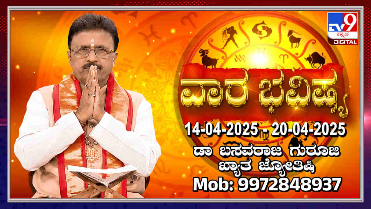 ಏಪ್ರಿಲ್ 14 ರಿಂದ 20: ವಾರ ಭವಿಷ್ಯವು ದ್ವಾದಶ ರಾಶಿಗಳ ಫಲಾಫಲಗಳನ್ನು ಒಳಗೊಂಡಿದೆ. ಸೌರ ಯುಗಾದಿ, ರಥೋತ್ಸವಗಳು ಮತ್ತು ಸಂಕಷ್ಟ ಚತುರ್ಥಿ ಮುಂತಾದ ವಿಶೇಷ ದಿನಗಳ ಬಗ್ಗೆಯೂ ಮಾಹಿತಿ ನೀಡಲಾಗಿದೆ. ಪ್ರತಿ ರಾಶಿಯ ಅದೃಷ್ಟ ಸಂಖ್ಯೆ, ಶುಭ ದಿಕ್ಕುಗಳ ಬಗ್ಗೆ ಗುರೂಜಿ ತಿಳಿಸಿಕೊಟ್ಟಿದ್ದಾರೆ.
