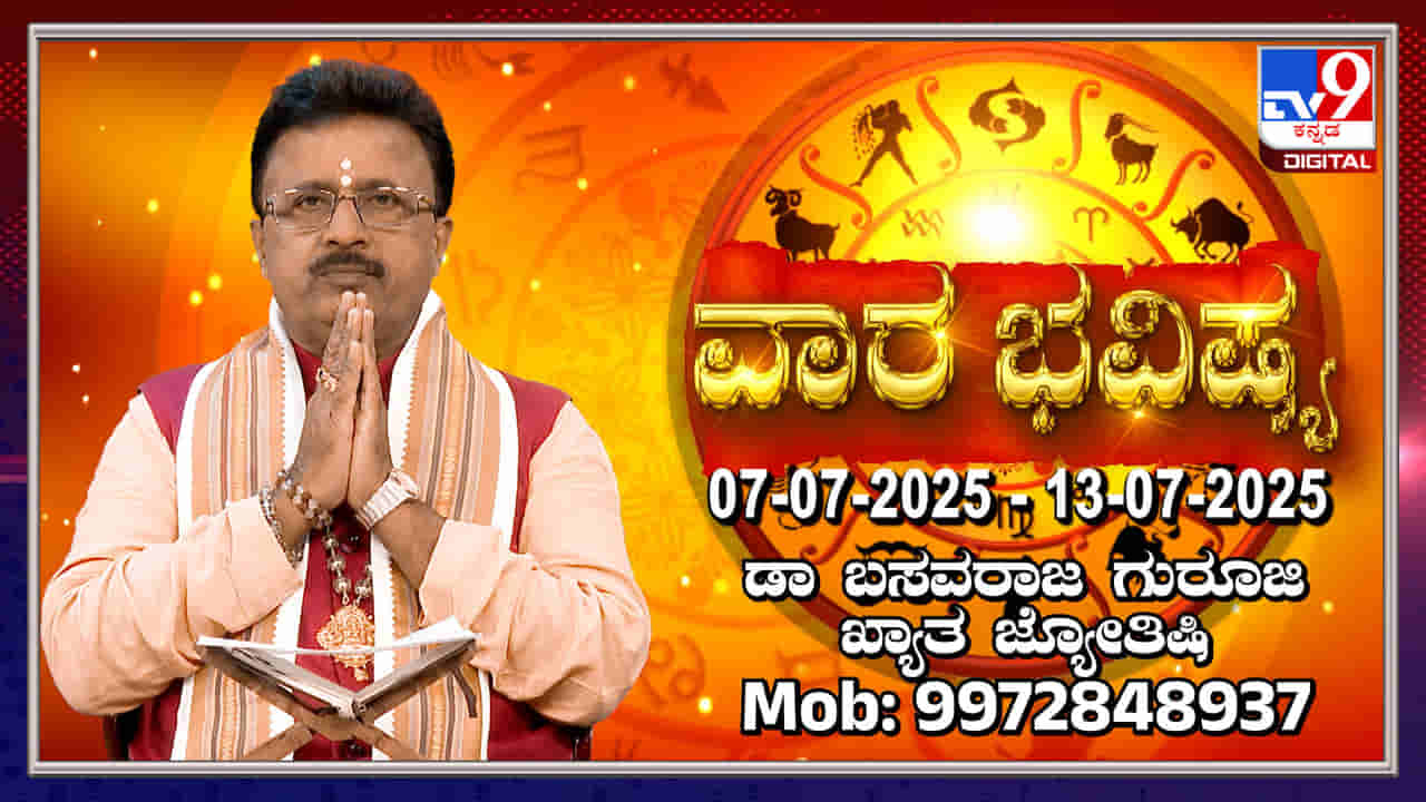 ಟಿವಿ9 ಕನ್ನಡದ ವಾರಭವಿಷ್ಯ ಕಾರ್ಯಕ್ರಮದಲ್ಲಿ ಡಾ. ಬಸವರಾಜ್ ಗುರೂಜಿ ಜುಲೈ 7-13, 2025 ರ ವಾರದ ರಾಶಿ ಫಲಾಫಲಗಳನ್ನು ತಿಳಿಸಿದ್ದಾರೆ. ಮೇಷ, ವೃಷಭ ಮತ್ತು ಮಿಥುನ ರಾಶಿಯವರಿಗೆ ಈ ವಾರ ಗ್ರಹಗಳ ಶುಭ ಸ್ಥಾನದಿಂದ ಉತ್ತಮ ಫಲಗಳು ದೊರೆಯುವ ಸಾಧ್ಯತೆ ಇದೆ. ಪ್ರತಿಯೊಂದು ರಾಶಿಯವರಿಗೂ ವಿಶೇಷ ಸಲಹೆಗಳು ಮತ್ತು ಪರಿಹಾರಗಳನ್ನು ಕಾರ್ಯಕ್ರಮದಲ್ಲಿ ನೀಡಲಾಗಿದೆ.