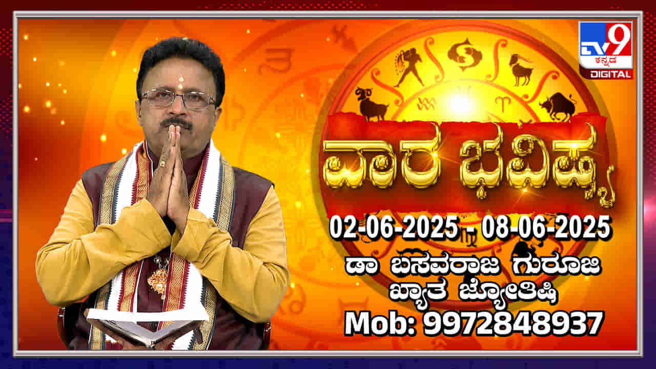 ಡಾ. ಬಸವರಾಜ ಗುರೂಜಿ ಅವರು ಜೂನ್ 2 ರಿಂದ8ರ ವರೆಗಿನ ವಾರ ರಾಶಿ ಭವಿಷ್ಯವನ್ನು ತಿಳಿಸಿದ್ದಾರೆ. ಮೇಷ, ವೃಷಭ ಮತ್ತು ಮಿಥುನ ರಾಶಿಯವರಿಗೆ ಈ ವಾರ ಅದೃಷ್ಟ ಮತ್ತು ಆರ್ಥಿಕ ಲಾಭದ ಯೋಗವಿದೆ. ಆದರೆ, ಕೆಲವು ರಾಶಿಯವರು ಆರೋಗ್ಯ ಮತ್ತು ಹಣಕಾಸಿನ ವಿಷಯದಲ್ಲಿ ಎಚ್ಚರಿಕೆಯಿಂದಿರಬೇಕು. ಪ್ರತಿಯೊಂದು ರಾಶಿಗೂ ವಿಶೇಷ ಸಲಹೆಗಳು ಮತ್ತು ಮಂತ್ರಗಳನ್ನು ತಿಳಿಸಲಾಗಿದೆ.