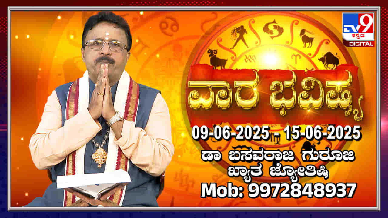 ಡಾ. ಬಸವರಾಜ ಗುರೂಜಿ ಅವರು ಜೂನ್ 9 ರಿಂದ 15ರ ವಾರದ ರಾಶಿ ಭವಿಷ್ಯವನ್ನು ತಿಳಿಸಿದ್ದಾರೆ. ಈ ವಾರದಲ್ಲಿ ಮೇಷ ಮತ್ತು ವೃಷಭ ರಾಶಿಯವರಿಗೆ ಗ್ರಹಗಳ ಶುಭಫಲಗಳಿವೆ. ಹಣಕಾಸು, ಉದ್ಯೋಗ, ಮತ್ತು ಕುಟುಂಬದಲ್ಲಿನ ವಿಷಯಗಳ ಕುರಿತು ವಿವರವಾದ ಮಾಹಿತಿಯನ್ನು ಒಳಗೊಂಡಿದೆ. ವಾರದ ವಿಶೇಷ ದಿನಗಳು ಮತ್ತು ಧಾರ್ಮಿಕ ಆಚರಣೆಗಳ ಬಗ್ಗೆಯೂ ತಿಳಿಸಲಾಗಿದೆ.