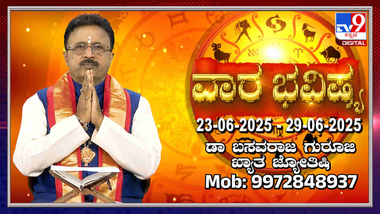 ಖ್ಯಾತ ಜ್ಯೋತಿಷಿ ಡಾ. ಬಸವರಾಜ ಗುರೂಜಿ ಜೂನ್ 23 ರಿಂದ 29ರ ವಾರದ ಭವಿಷ್ಯವನ್ನು ತಿಳಿಸಿದ್ದಾರೆ. ಈ ವಾರದ ತಿಥಿಗಳು, ಹಬ್ಬಗಳು ಮತ್ತು ಗ್ರಹಗಳ ಸ್ಥಿತಿಯ ಜೊತೆಗೆ, ಎಲ್ಲಾ 12 ರಾಶಿಗಳ ಫಲಾಫಲಗಳ ಬಗ್ಗೆಯೂ ವಿವರಣೆ ನೀಡಲಾಗಿದೆ. ಮೇಷ ಮತ್ತು ವೃಷಭ ರಾಶಿಗಳ ಭವಿಷ್ಯವನ್ನು ಪ್ರಮುಖವಾಗಿ ಒಳಗೊಂಡಿದೆ.
