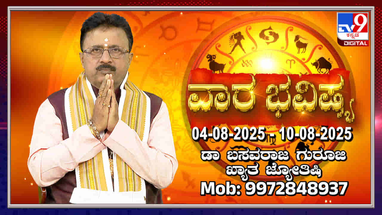 ಡಾ. ಬಸವರಾಜ ಗುರೂಜಿ ಅವರು ಆಗಸ್ಟ್ 4ರಿಂದ 10, 2025ರವರೆಗಿನ ವಾರದ ರಾಶಿ ಭವಿಷ್ಯವನ್ನು ತಿಳಿಸಿದ್ದಾರೆ. ಮೇಷ ಮತ್ತು ವೃಷಭ ರಾಶಿಯವರಿಗೆ ಈ ವಾರ ಹೆಚ್ಚು ಶುಭಫಲಗಳಿವೆ ಎಂದು ಹೇಳಲಾಗಿದೆ. ಗ್ರಹಗಳ ಸಂಚಾರ ಮತ್ತು ಮುಂಬರುವ ಹಬ್ಬಗಳ ಮಾಹಿತಿಯನ್ನೂ ಒಳಗೊಂಡಿದೆ. ವಿಡಿಯೋ ನೋಡಿ.