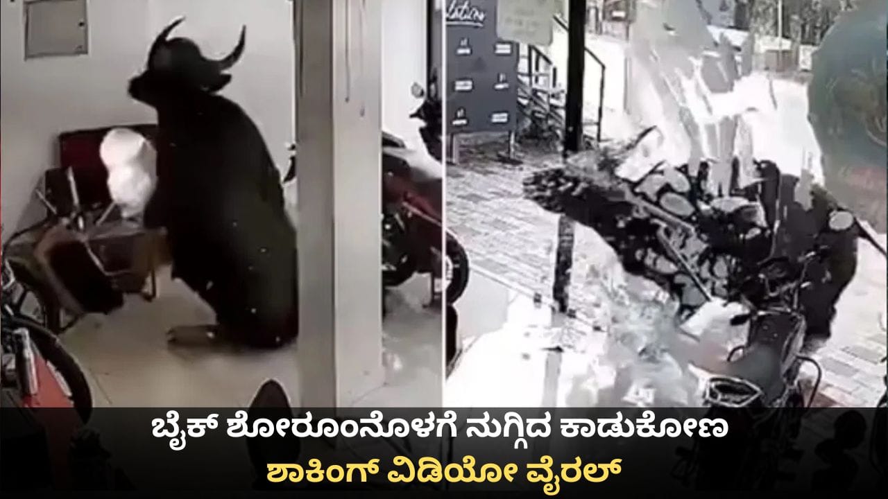 Viral Video: ಬೈಕ್ ಶೋರೂಂನೊಳಗೆ ನುಗ್ಗಿದ ಕಾಡುಕೋಣ; ಶಾಕಿಂಗ್ ವಿಡಿಯೋ ವೈರಲ್
